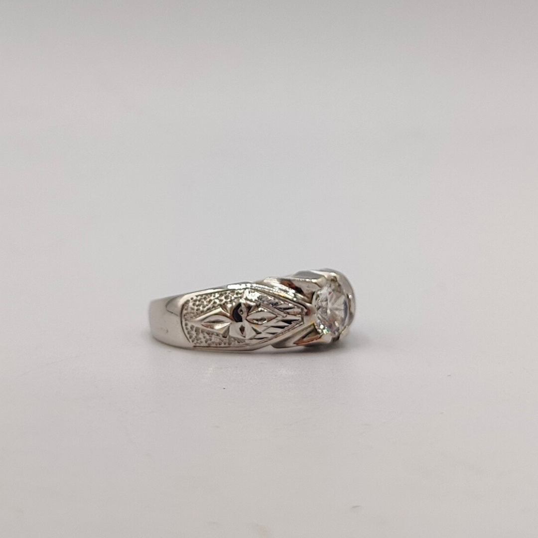 Descubre la sofisticación de nuestro anillo de sello, que presenta un impresionante diamante de 10 mm de diámetro en el centro, rodeado por un halo de diamantitos