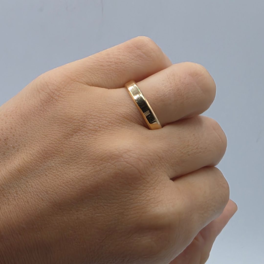 Diseño contemporáneo con esencia clásica. Esta alianza en oro de 18 quilates se distingue por su forma cuadrada, ofreciendo un estilo moderno, minimalista y con carácter.