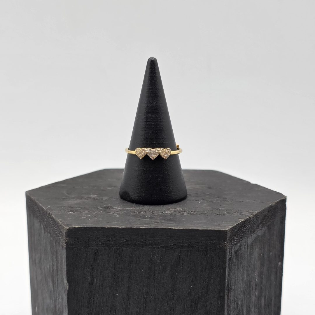 Anillo con Tres Corazones y Circonitas en Oro de 18K T:18