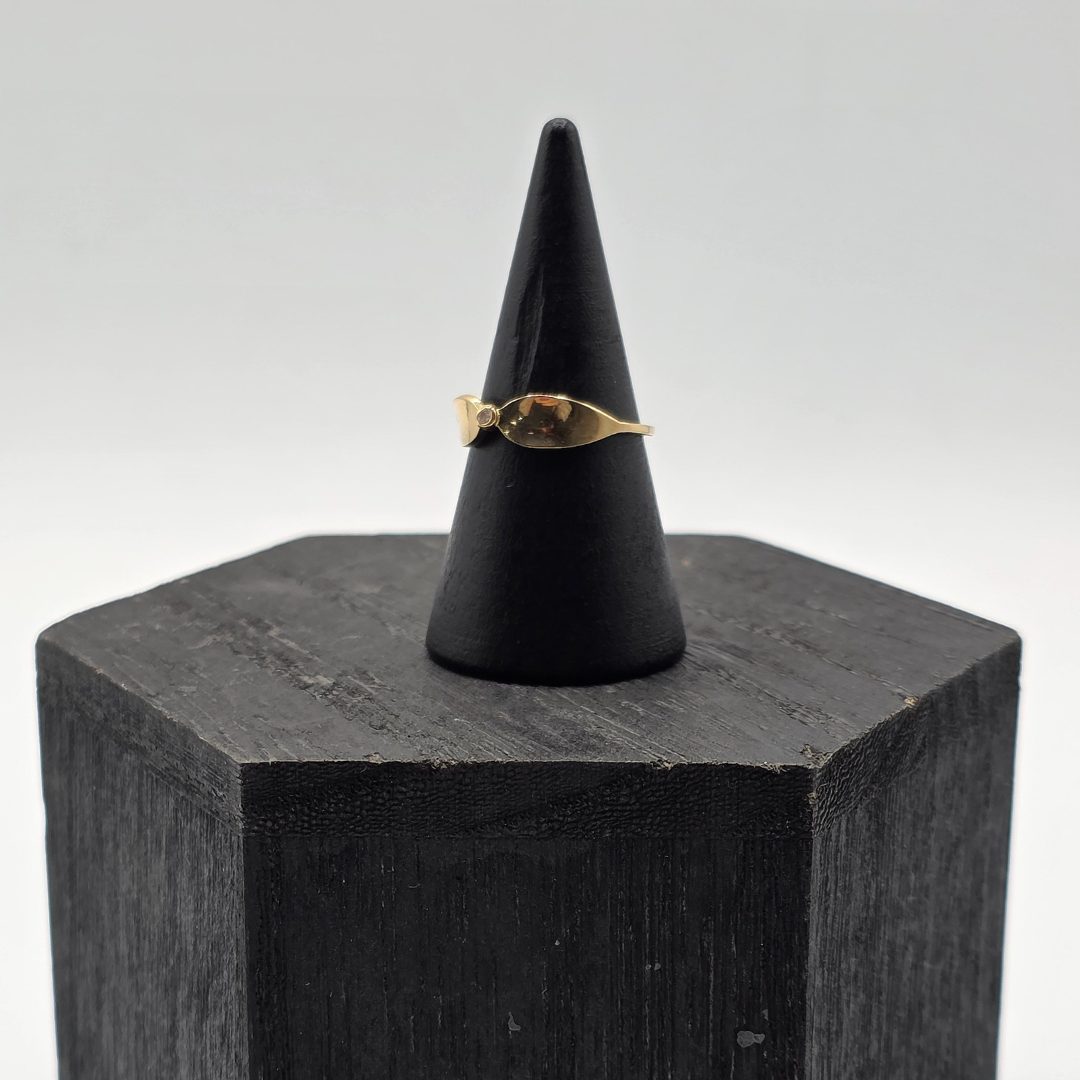 Delicado y femenino, este encantador anillo de oro amarillo de 18 quilates presenta un diseño de lazo sutil y elegante, símbolo de unión.