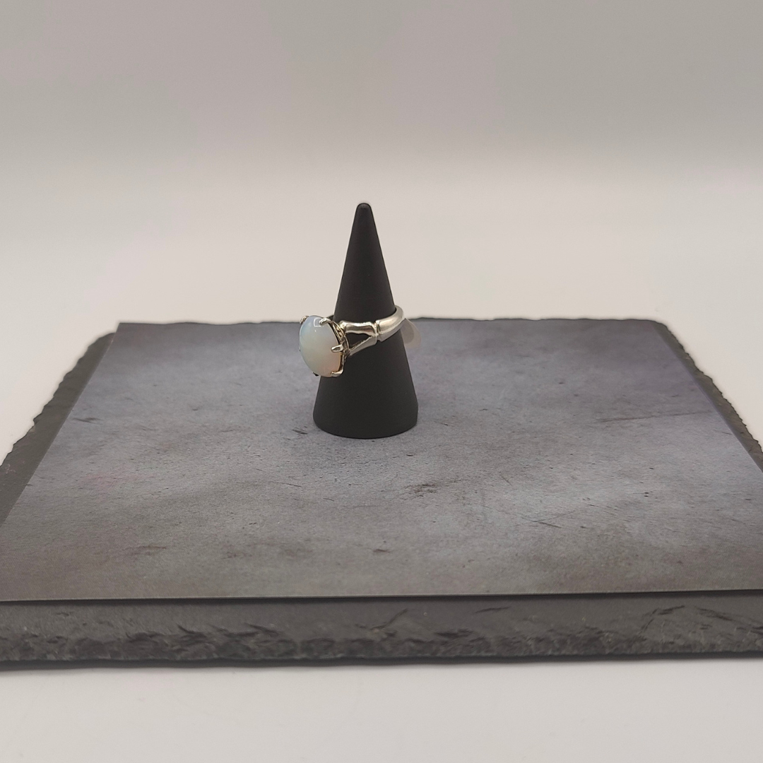 Elegante anillo de plata de ley con un cautivador cuarzo de cristal en el centro, que irradia luminosidad y pureza. La piedra, con su claridad impecable, refleja la luz de manera brillante, creando un efecto deslumbrante que atrapa todas las miradas. Su diseño Contemporáneo y minimalista resalta la belleza natural del cuarzo, permitiendo que su forma y brillo se conviertan en el enfoque principal de la pieza. Ideal para quienes buscan una joya versátil que se adapte tanto a ocasiones especiales como al uso diario, este anillo de cuarzo. cristal es un accesorio imprescindible para añadir un toque de sofisticación y elegancia.
