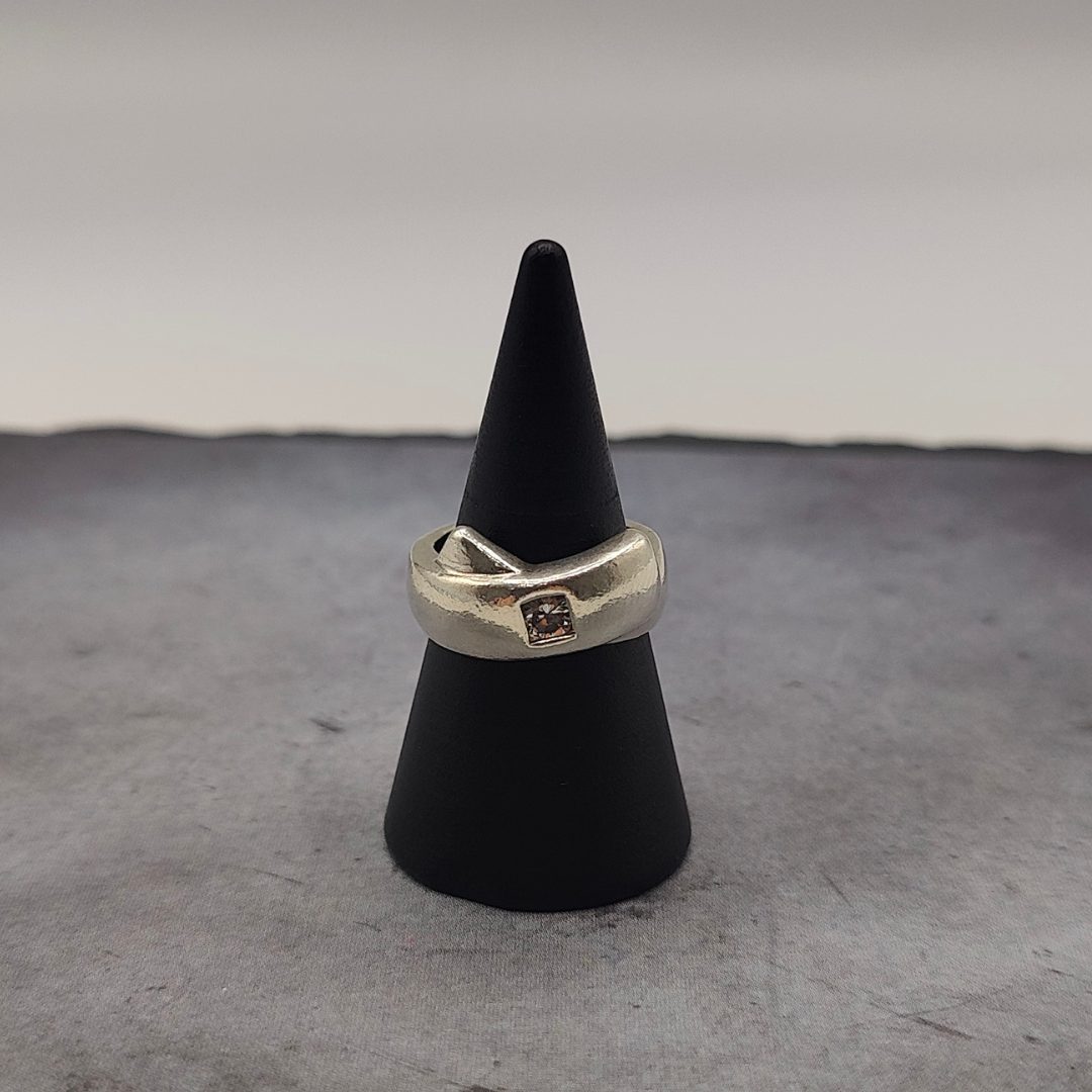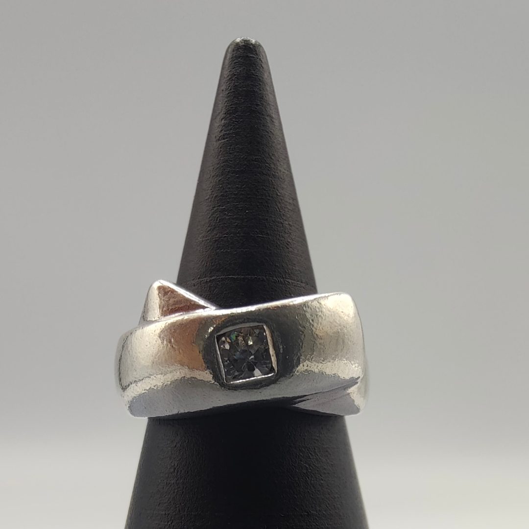 Este anillo de plata con circonita engastada en el centro es una pieza sofisticada y luminosa. La circonita, cuidadosamente colocada en el centro.