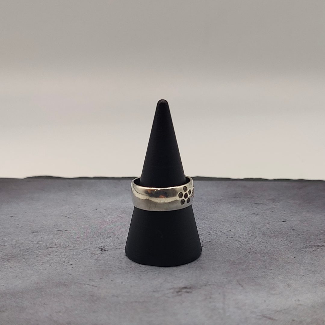 Este anillo de plata con flor grabada y circonitas es una pieza delicada y llena de encanto. El diseño floral, grabado con precisión, aporta un toque de sofisticación y elegancia, mientras que las circonitas incrustadas en sus pétalos añaden un brillo sutil y luminoso. La plata, con su acabado pulido, resalta la belleza de la flor, creando una alegría que es tanto romántica como moderna. Ideal para quienes buscan una pieza única y refinada, este anillo es perfecto para ocasiones especiales o para dar un toque especial