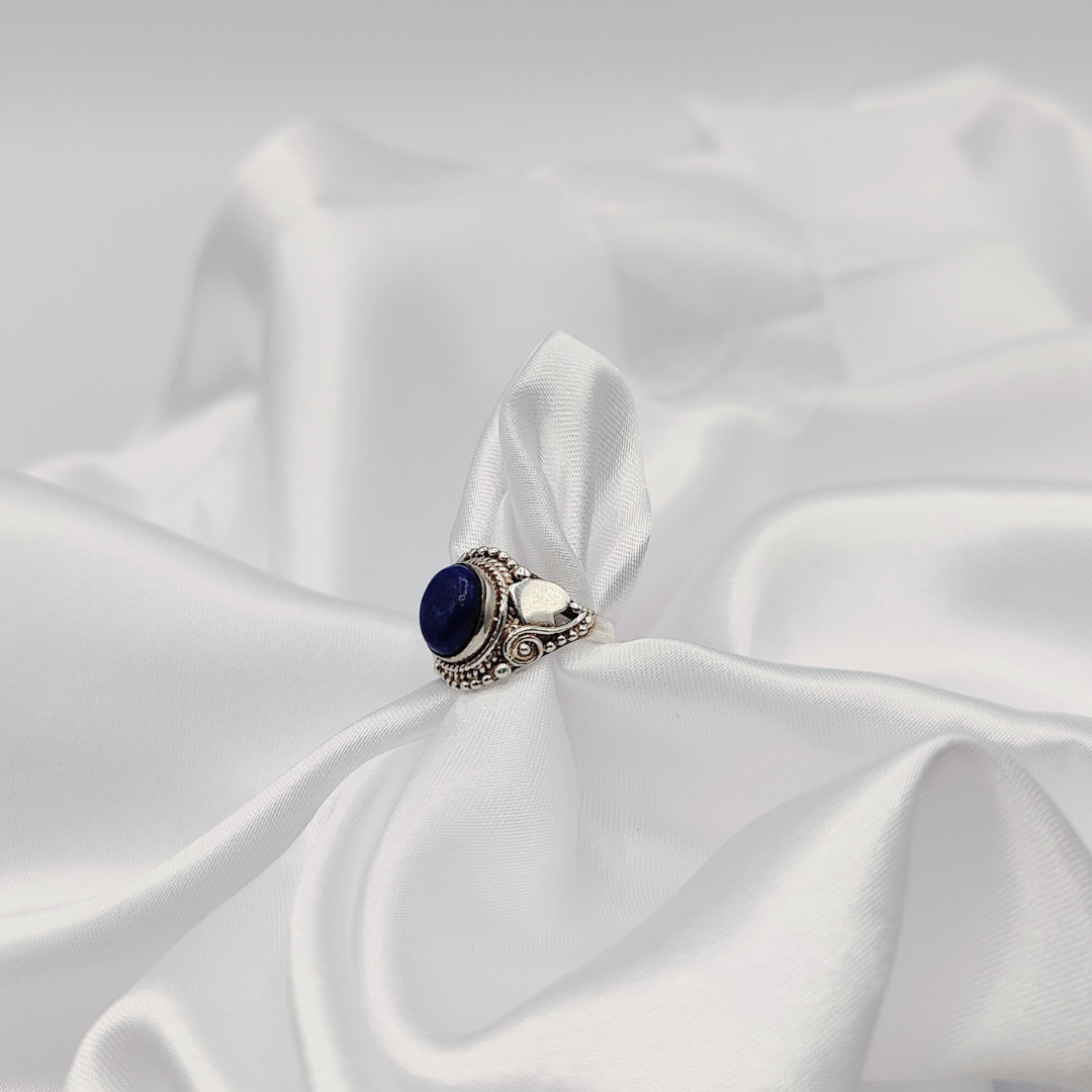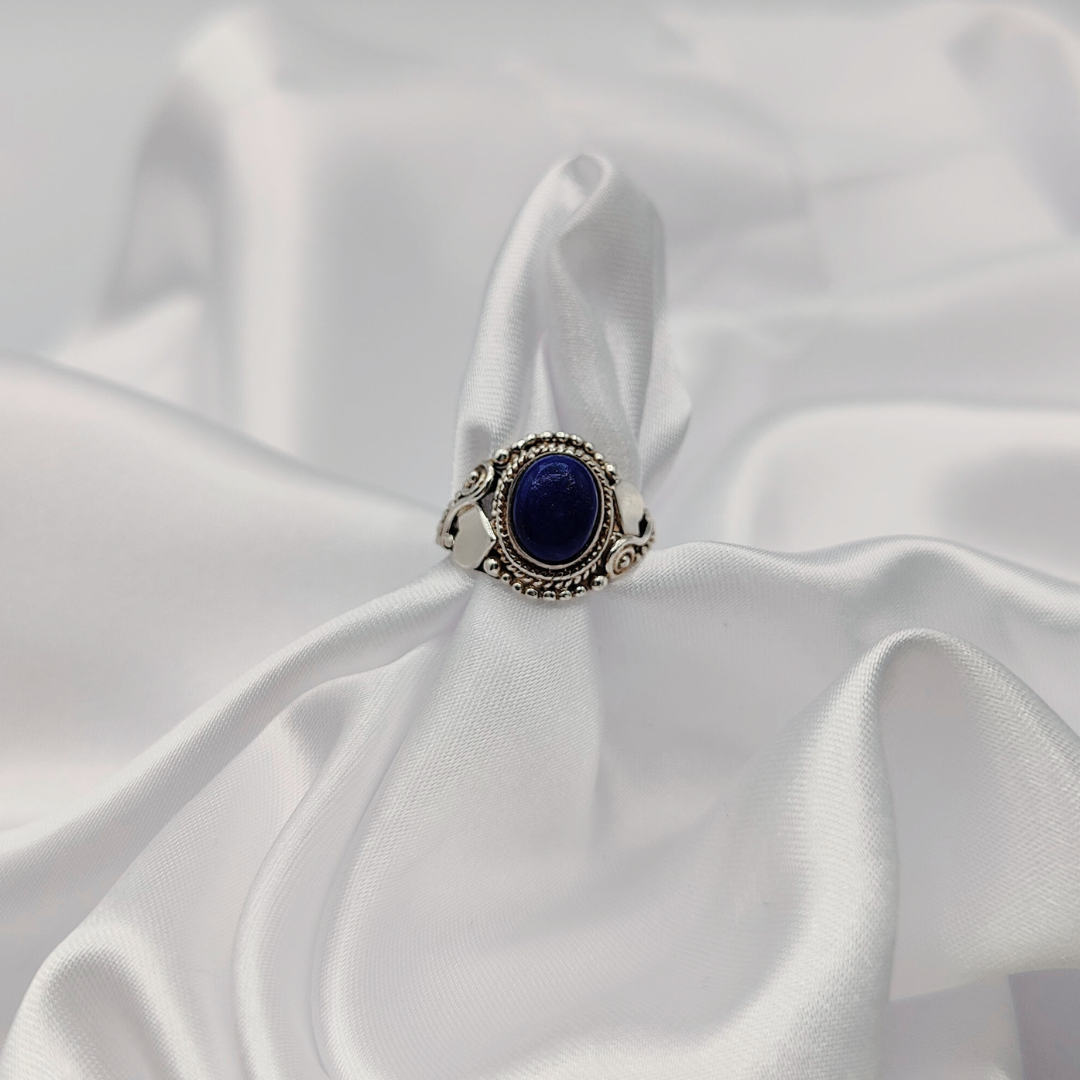 Haz que tu estilo brille con nuestro anillo de lapislázuli con corazones de plata y lleva contigo el amor y la conexión en cada momento