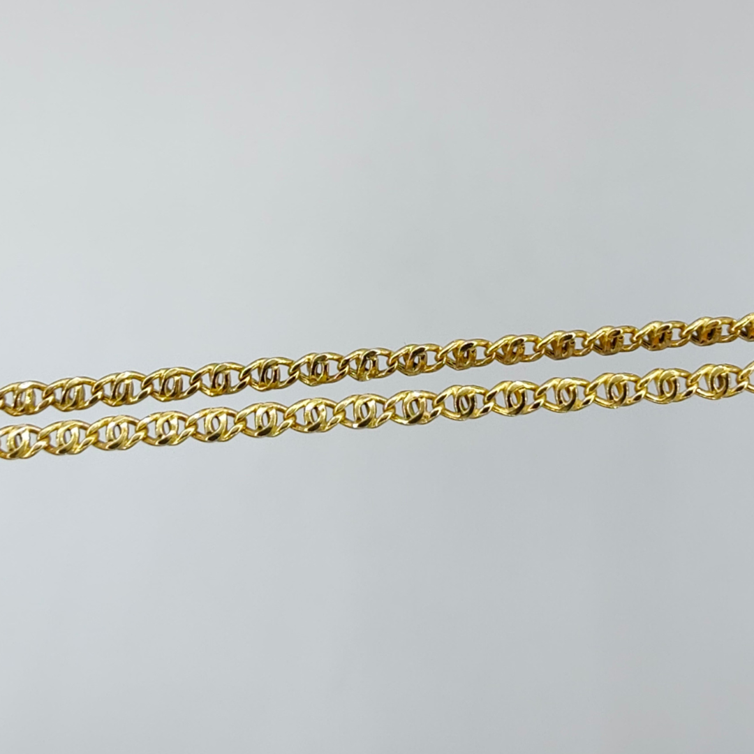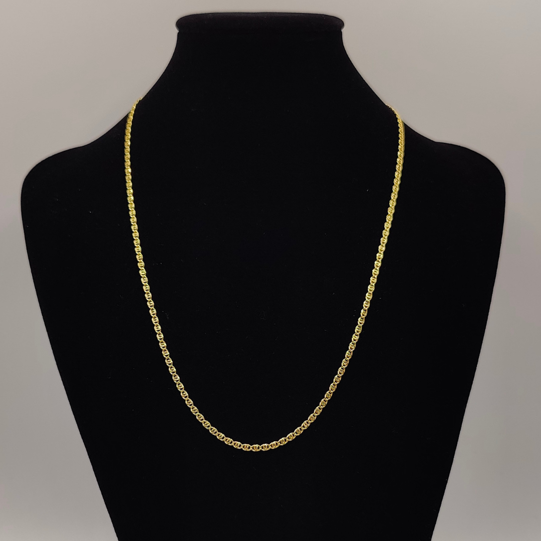 Esta cadena barbada doble de 50 cm de longitud y 2 mm de ancho es una pieza de joyería que combina fuerza y estilo con su diseño distintivo. Caracterizada por eslabones alternados que crean un patrón único y llamativo, esta cadena está fabricada con precisión en un material de alta calidad para garantizar durabilidad y brillo duradero.