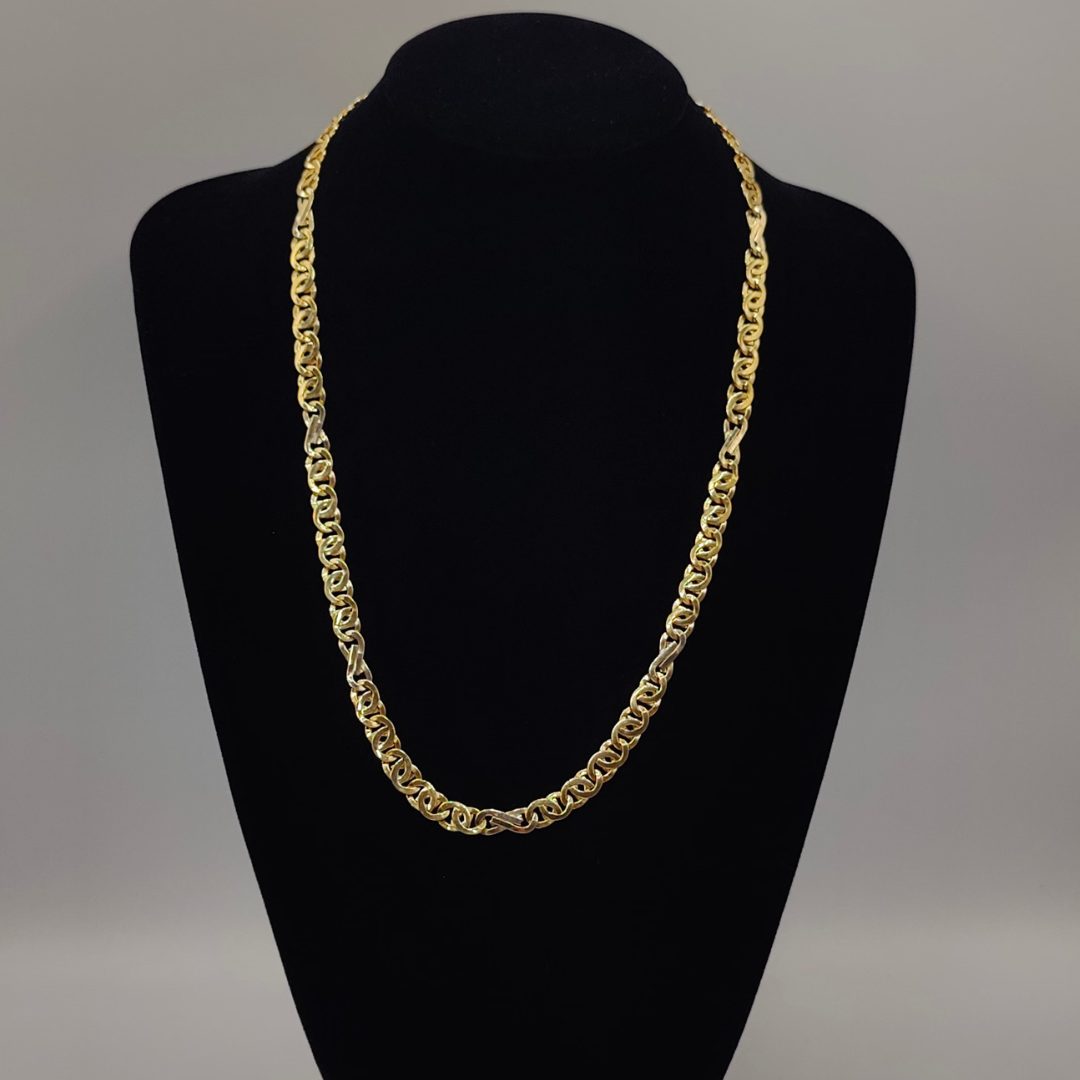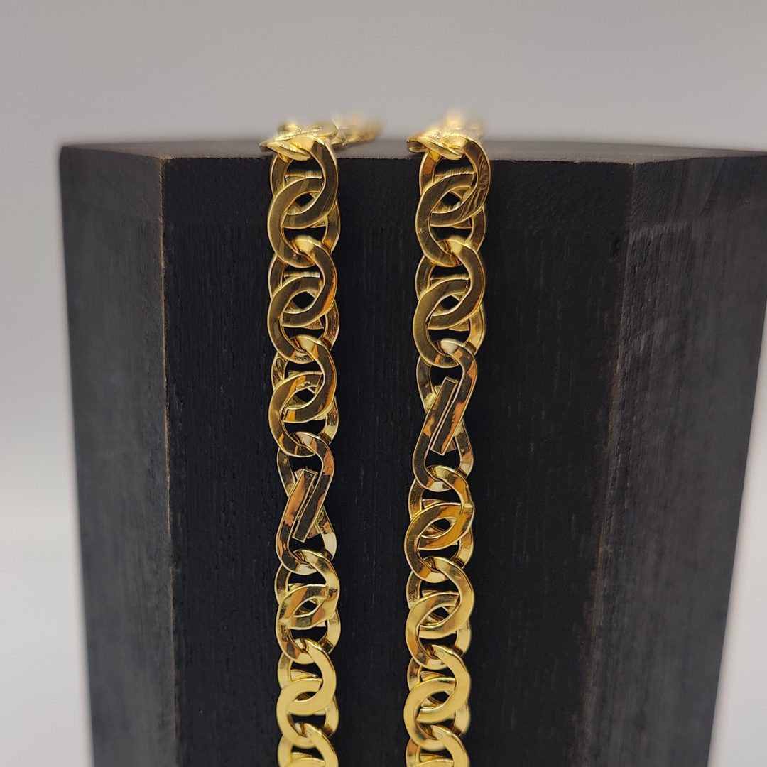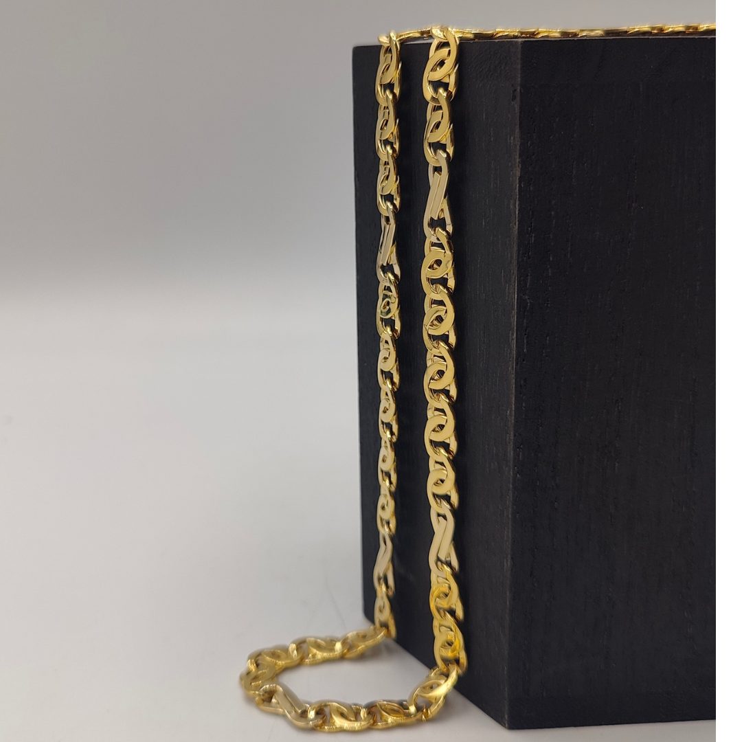 Con una longitud de 60 cm y un ancho de 7 mm, esta cadena tiene el tamaño ideal para ser el centro de atención, ya sea como pieza única o acompañada de tu colgante favorito. Fabricada con materiales de alta calidad, asegura durabilidad y un brillo excepcional.