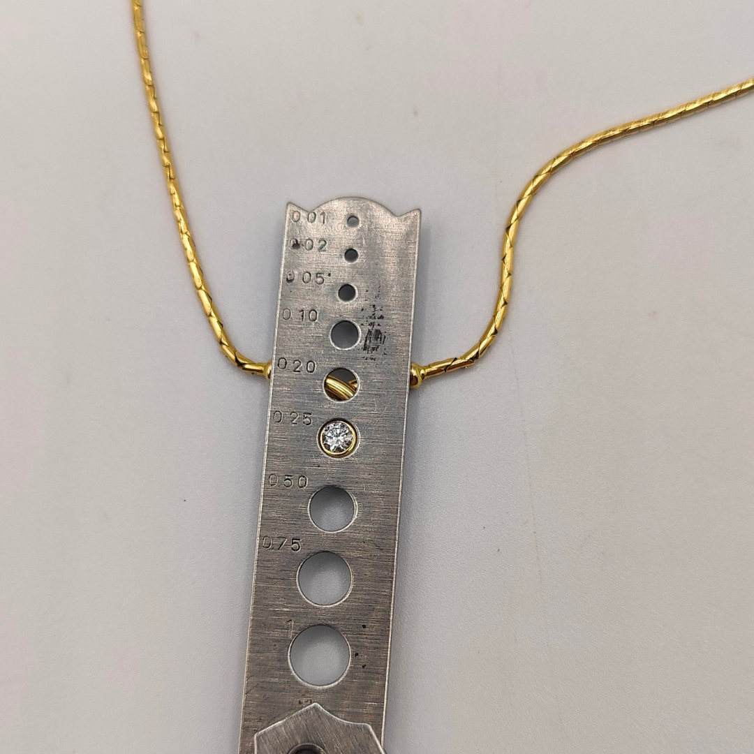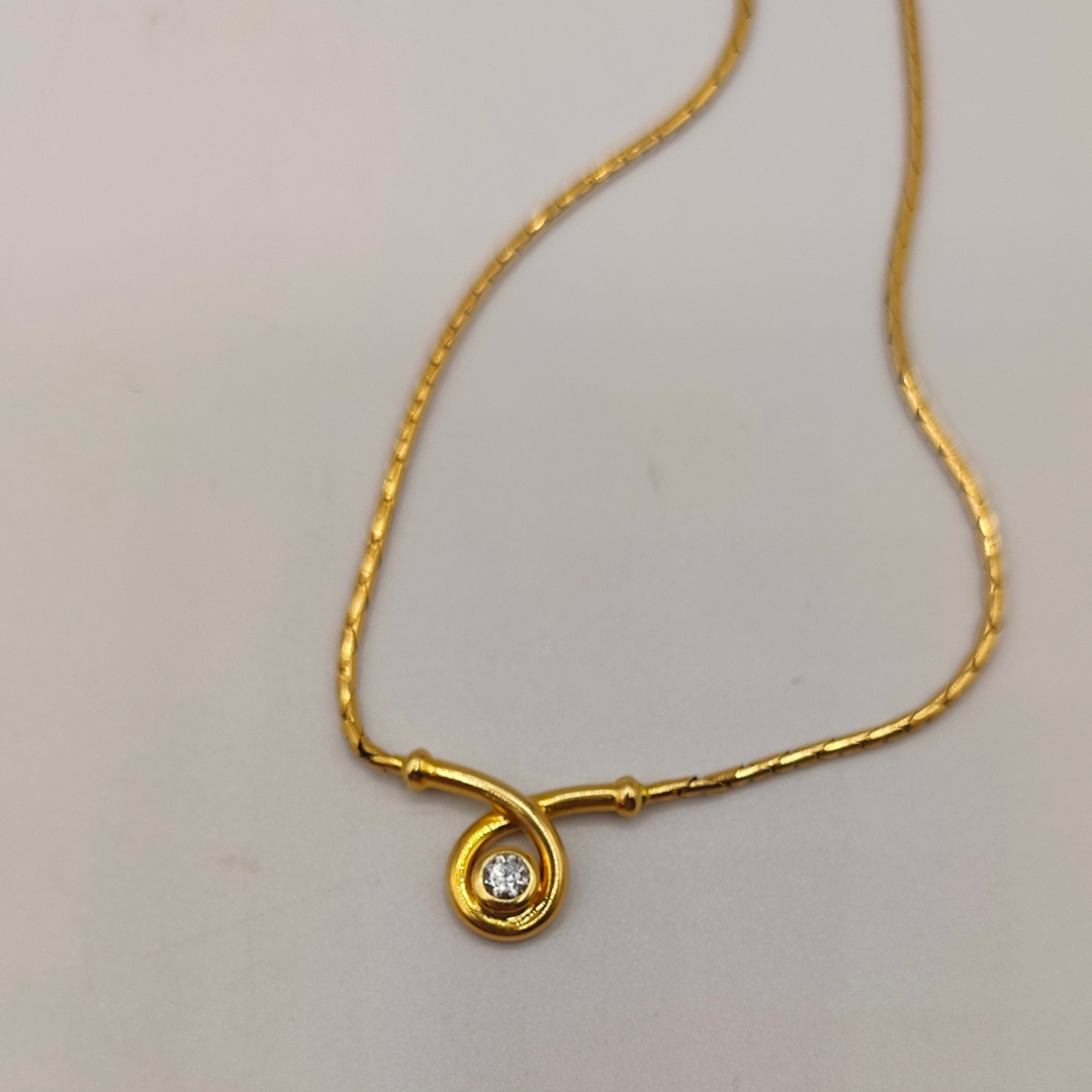 Sumérgete en la sofisticación con nuestra cadena serpiente de oro de 18 quilates, adornada con un brillante diamante de 0,25 en el centro. Este diseño exclusivo combina la elegancia del oro con el destello del diamante, creando una pieza de joyería que destaca por su estilo y lujo. Ideal para elevar cualquier atuendo, esta cadena es perfecta tanto para ocasiones especiales como para el día a día. Un regalo inolvidable o una adición imprescindible a tu colección personal, este colgante se convertirá en un tesoro atemporal.