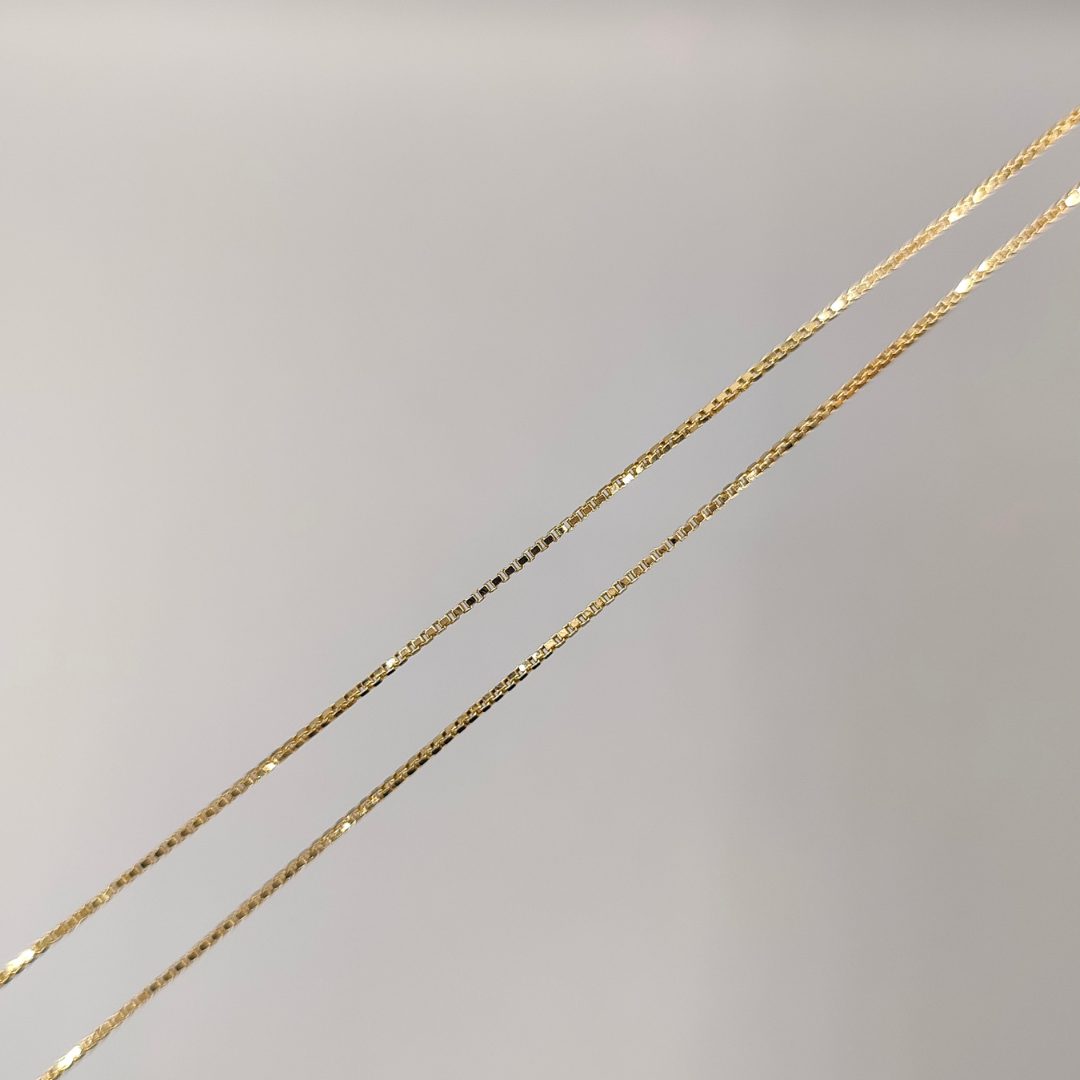 Esta elegante cadena veneciana de oro de 18 quilates es la opción perfecta para quienes buscan una joya sofisticada y atemporal. Con una longitud de 60 cm, su diseño de eslabones rectangulares entrelazados ofrece un acabado liso y brillante que refleja la luz de manera cautivadora. Fabricada en oro de 18K, garantiza una gran durabilidad y resistencia, lo que la convierte en una pieza ideal tanto para el uso diario como para ocasiones especiales. Su longitud permite un ajuste cómodo, cayendo con gracia alrededor del cuello. Perfecta para llevar sola o acompañada de un colgante, esta cadena veneciana añade un toque de lujo discreto a cualquier estilo.