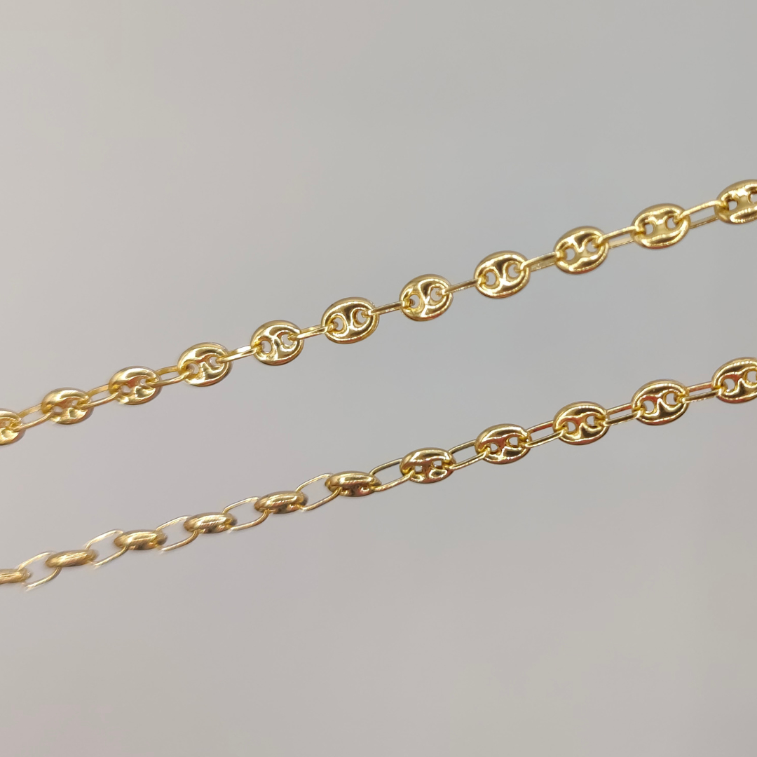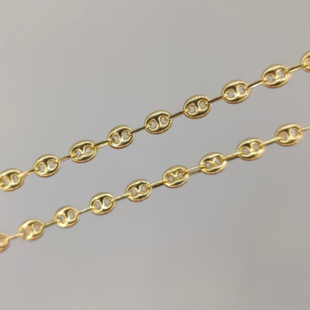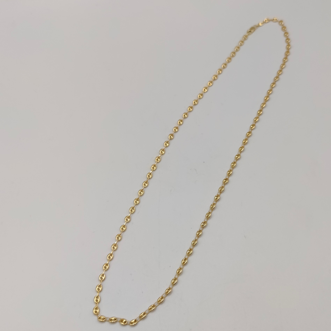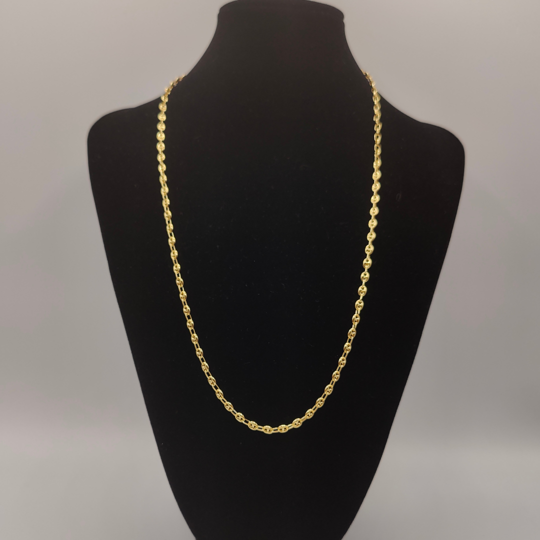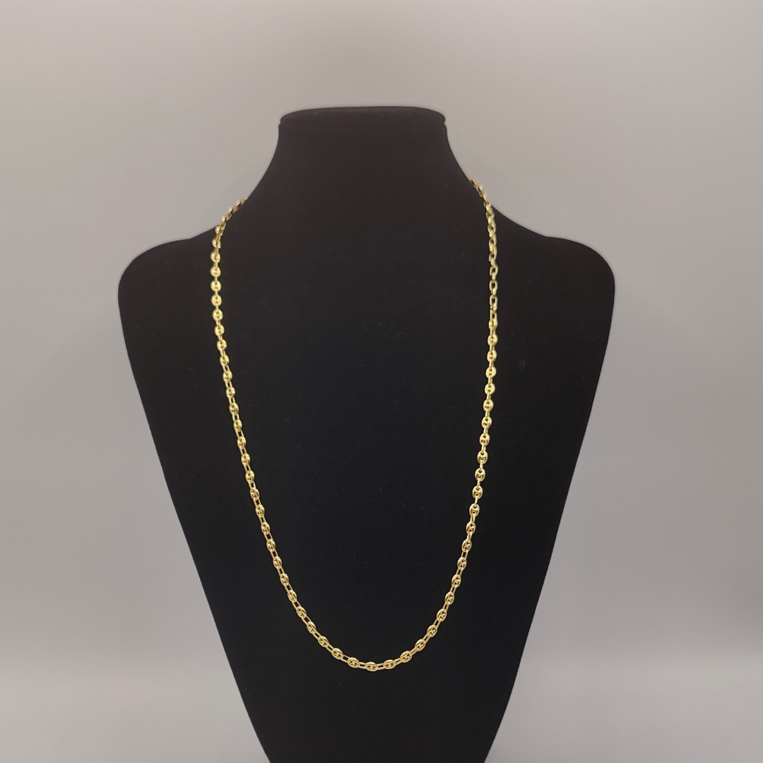 Una cadena calabrote de 60 cm de longitud, con un grosor de 3 mm y fabricada en oro de 18 quilates, es una pieza de joyería elegante y distintiva que combina un diseño clásico con una construcción duradera. La longitud de 60 cm permite que la cadena se asiente cómodamente alrededor del cuello, generalmente llegando a la clavícula o un poco más abajo, lo que la hace adecuada tanto para hombres como para mujeres. Con un grosor de 3 mm, la cadena ofrece un equilibrio perfecto entre sutileza y presencia, siendo lo suficientemente delgada para un look elegante y discreto, pero aún notable y atractiva.