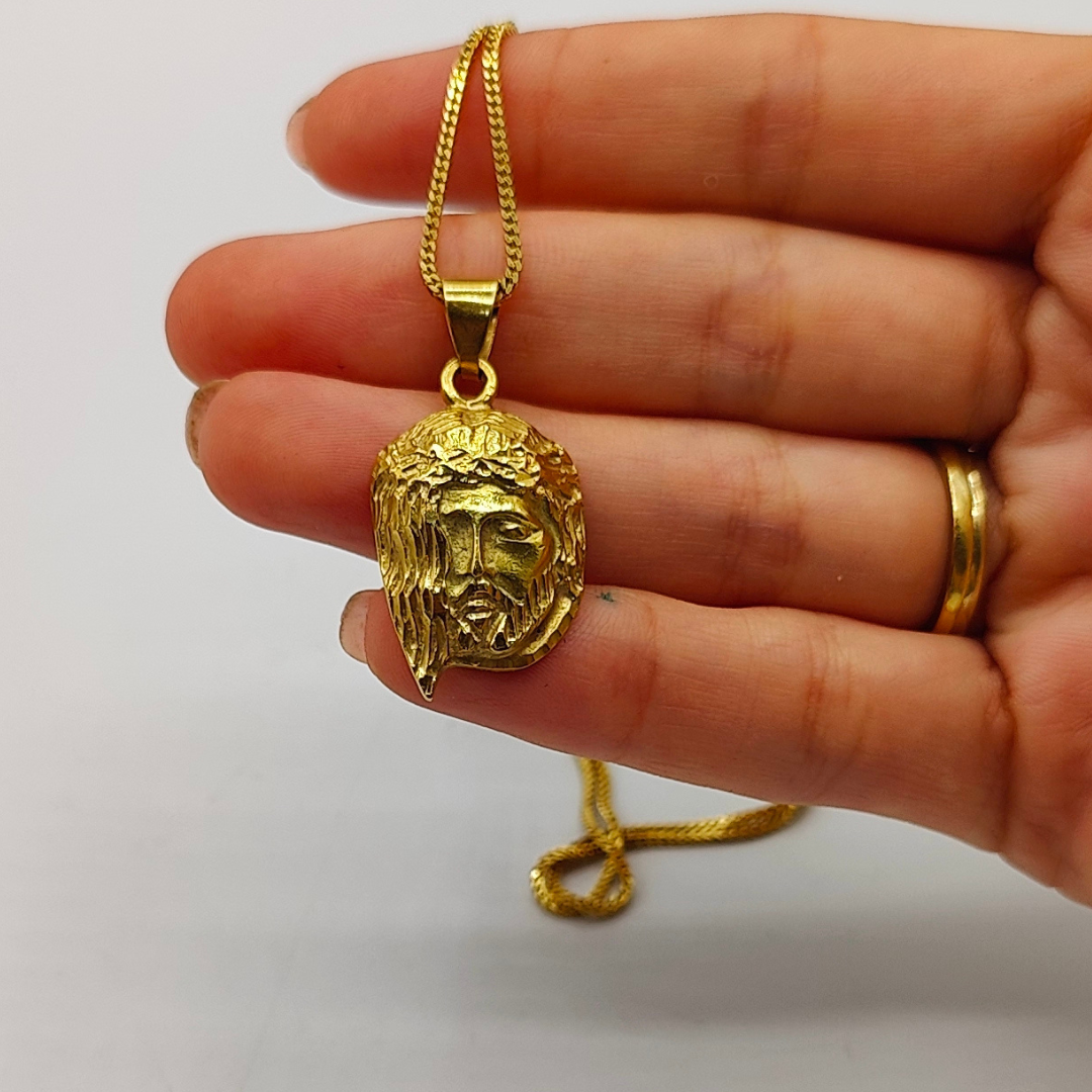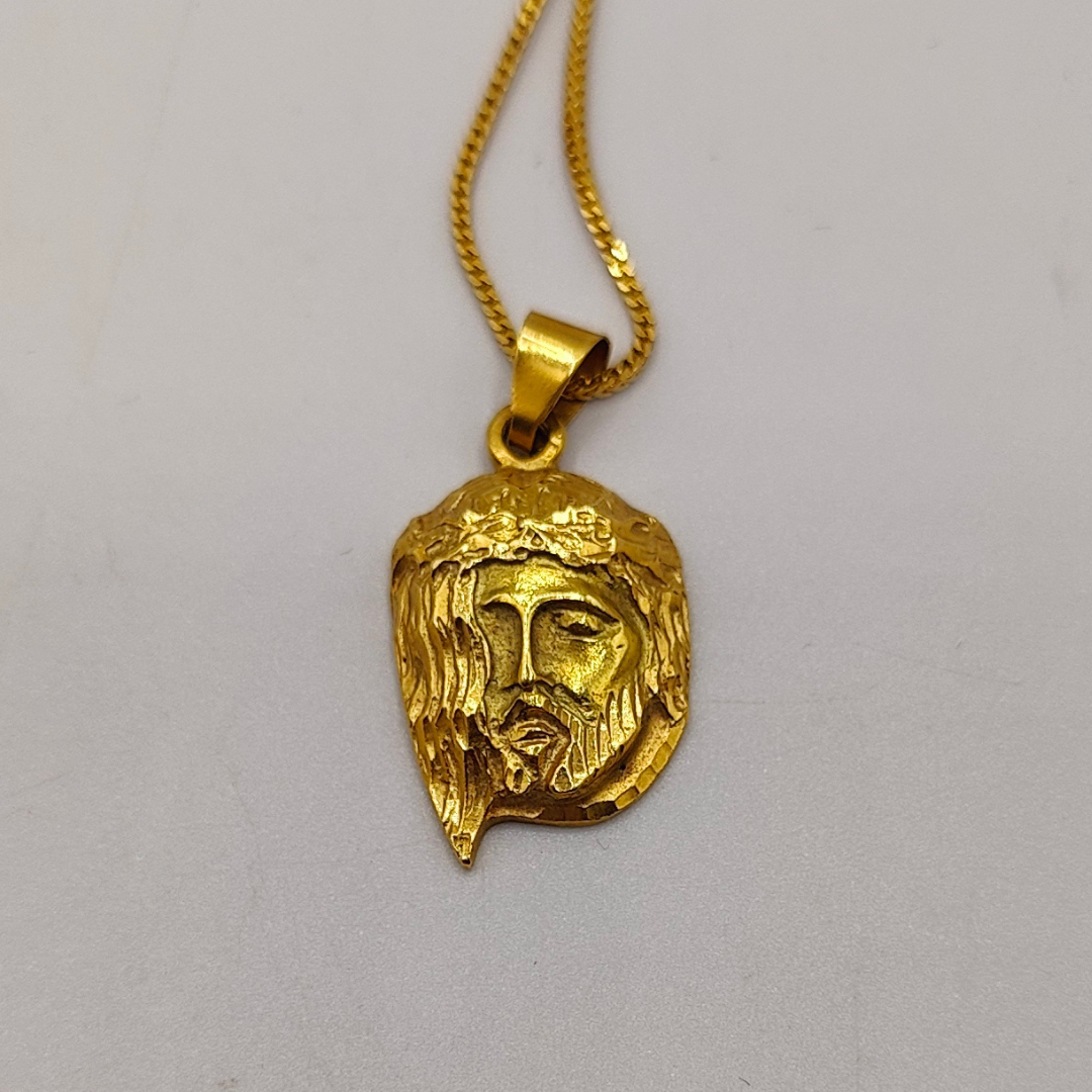 Descubre la elegancia y la devoción con nuestro colgante de la cara de Jesús, finamente elaborado en oro de 18 quilates. Este colgante presenta una representación detallada