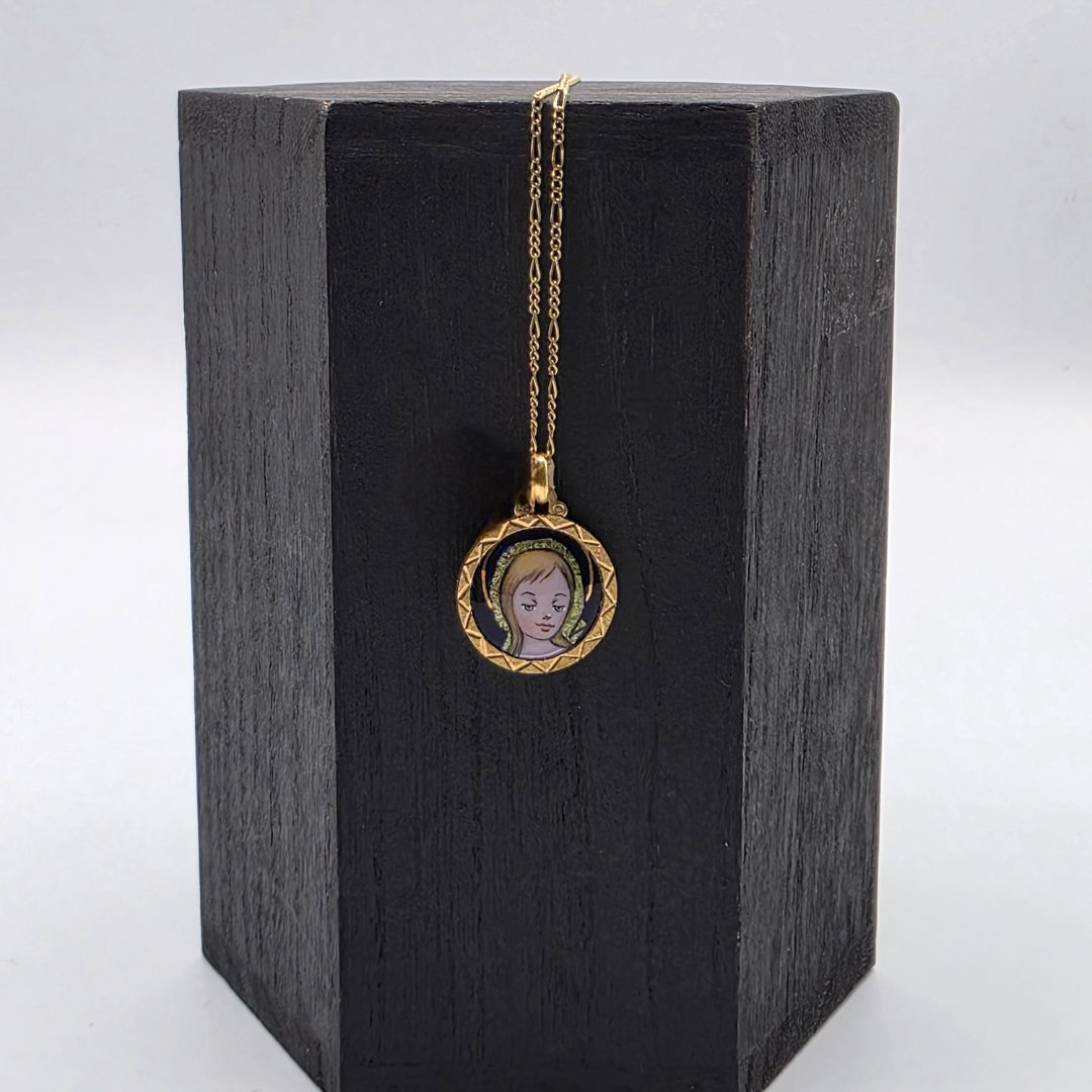 Este delicado colgante en oro de 18 quilates presenta una cara de ángel, cuya expresión serena se destaca con un esmaltado de colores vibrantes, añadiendo un toque de frescura y vitalidad. El contraste entre el brillo del oro y los detalles esmaltados crea una pieza única que combina simbolismo y arte. Ideal para quienes buscan una joya con un diseño moderno y lleno de significado, este colgante es perfecto tanto para ocasiones especiales como para complementar tu estilo diario con un toque distintivo y encantador.