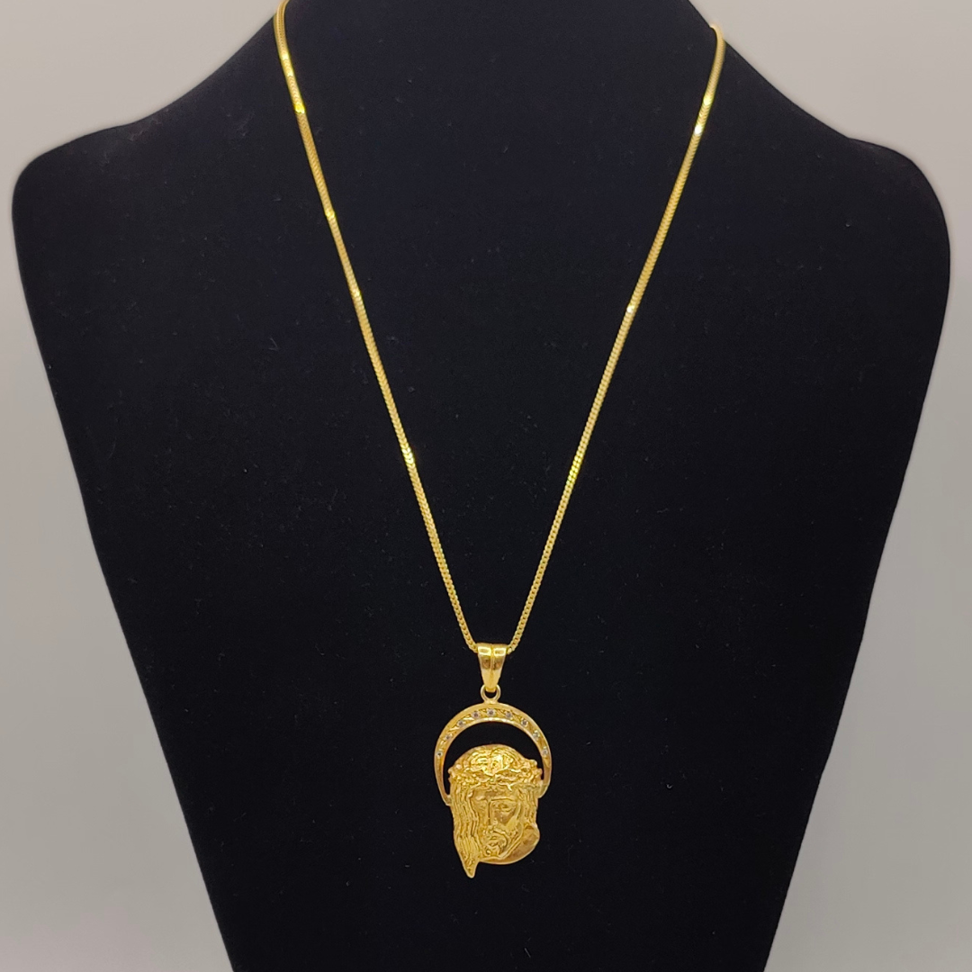 Te presentamos nuestro deslumbrante colgante con la cara de Jesús, adornado con brillantes circonitas. Este colgante combina devoción y elegancia en un diseño sofisticado.