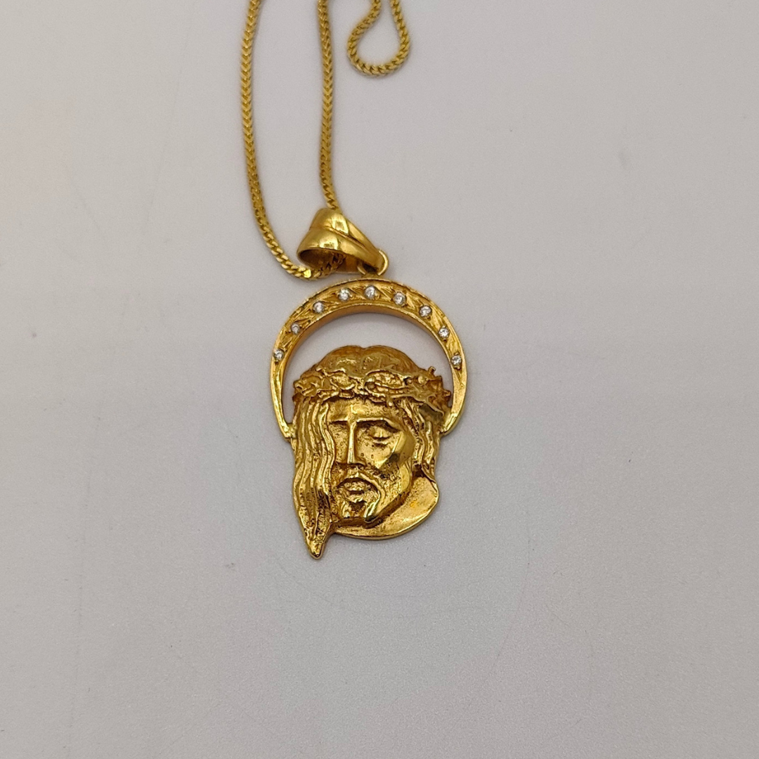 Te presentamos nuestro deslumbrante colgante con la cara de Jesús, adornado con brillantes circonitas. Este colgante combina devoción y elegancia