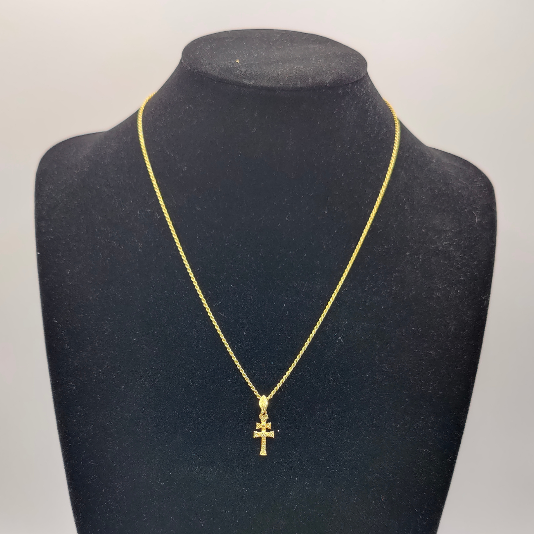 Este elegante colgante de cruz de Caravaca es una joya excepcionalmente diseñada para quienes valoran la espiritualidad y el estilo.