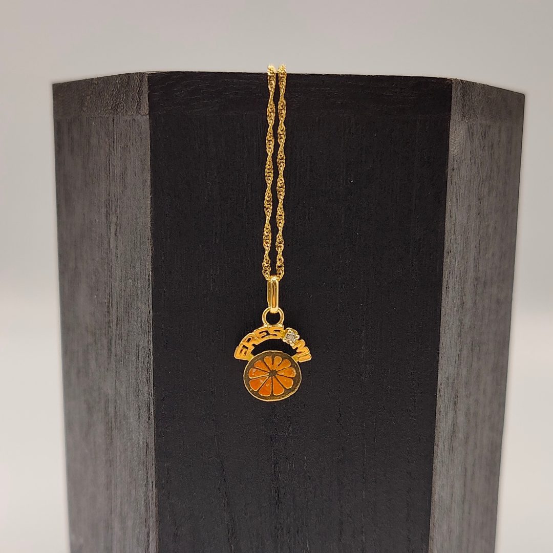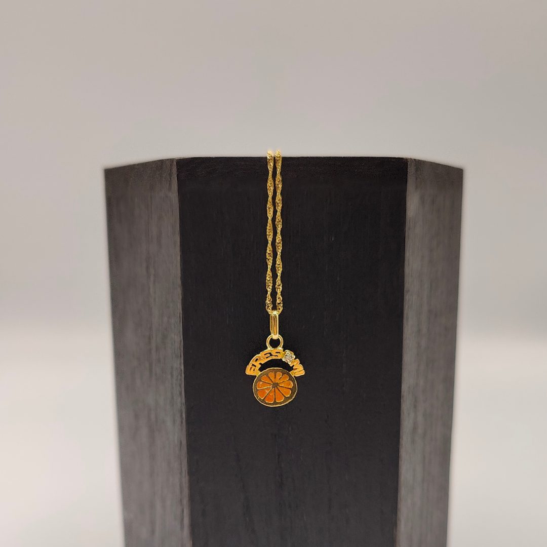Este emotivo colgante en oro 18K es la representación perfecta del amor y la conexión. Diseñado en forma de media naranja, lleva grabada la frase «Eres mi media naranja», destacando el simbolismo de las almas gemelas. Un brillante diamante cuidadosamente colocado añade un toque de lujo y sofisticación, haciendo de esta pieza un regalo único y especial.
