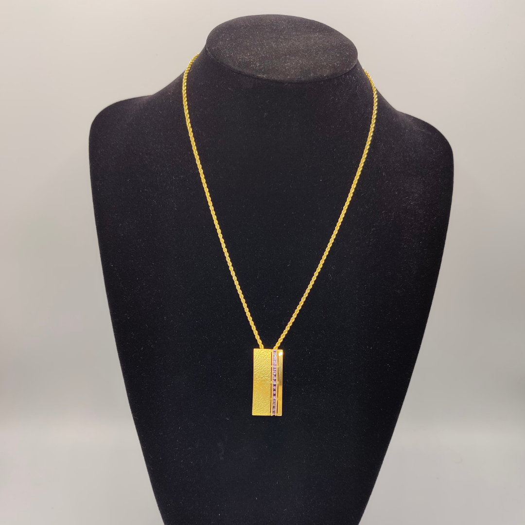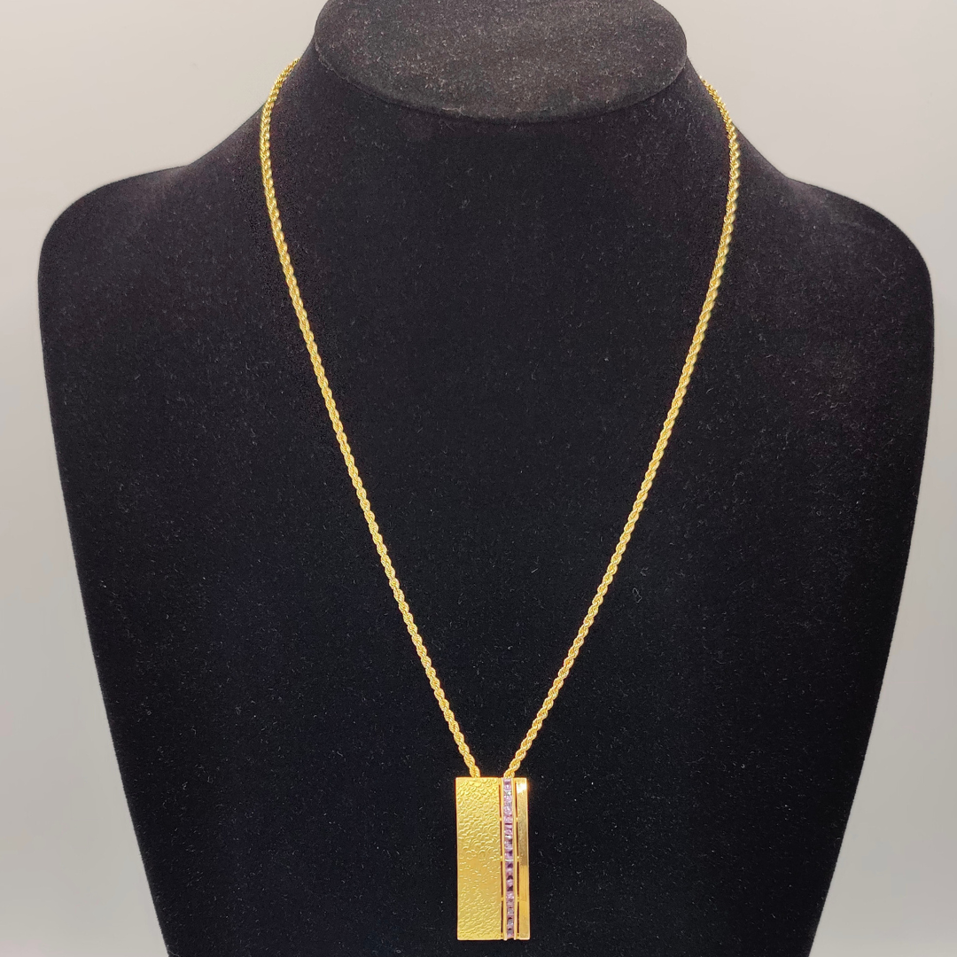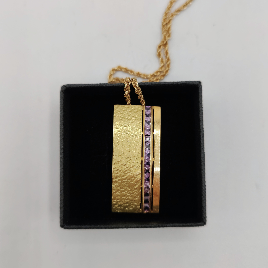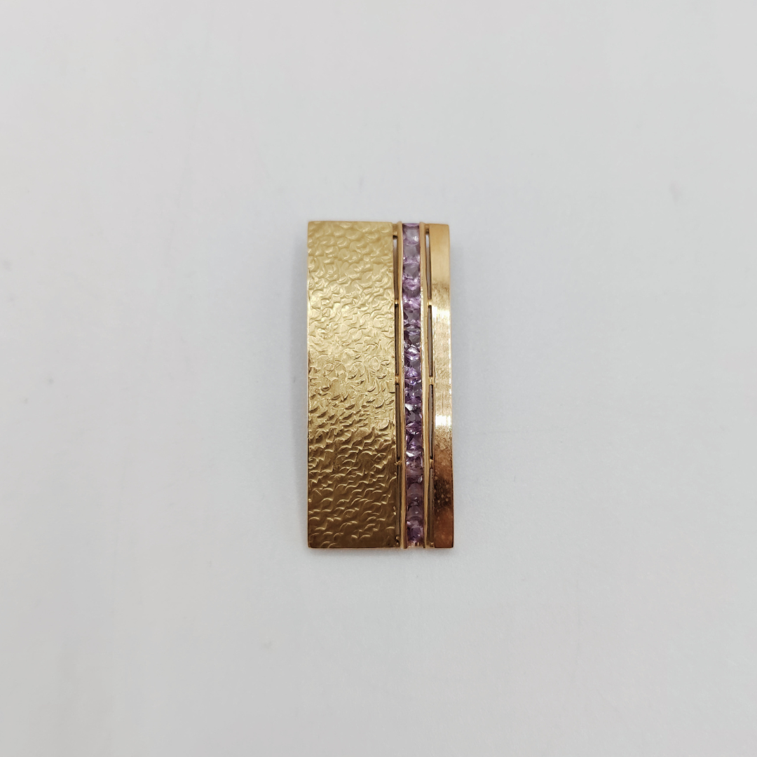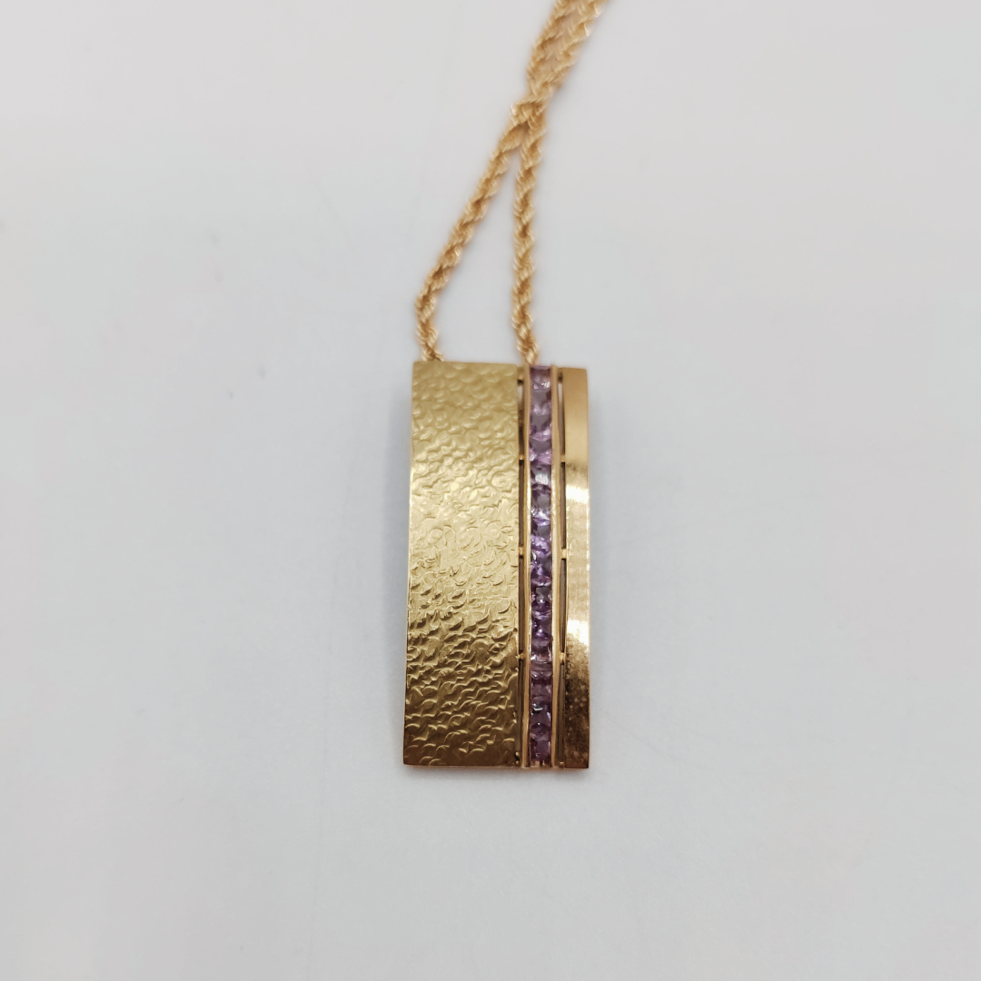 Este elegante Colgante Rectangular con Textura con hilera de circonitas lilas.