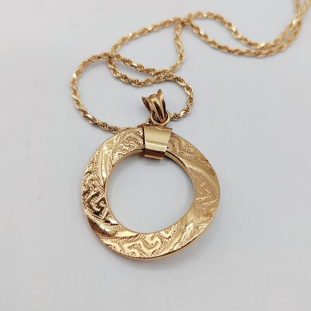 Añade un toque de lujo y estilo icónico a tu look con el Colgante Redondo con Logo estilo Versace