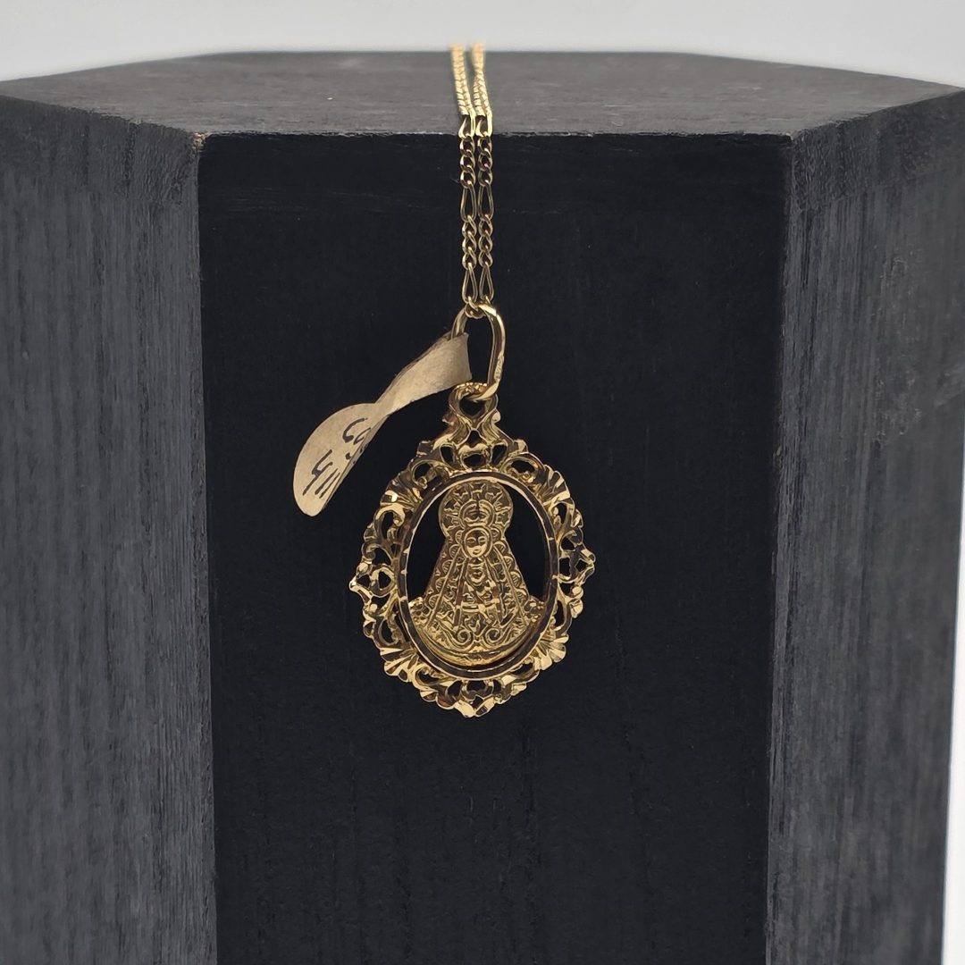 Esta medalla en oro de 18 quilates presenta la imagen de la Virgen del Rocío, una figura profundamente venerada en la tradición religiosa española, especialmente en Andalucía. Con un diseño meticulosamente detallado, la medalla captura la serenidad y el simbolismo protector de la Virgen. El oro de 18K aporta una durabilidad excepcional y un brillo sofisticado, convirtiéndola en una joya significativa y atemporal. Ideal para quienes buscan una pieza religiosa llena de devoción, perfecta tanto para llevar como amuleto de protección diaria como para regalar en momentos especiales.