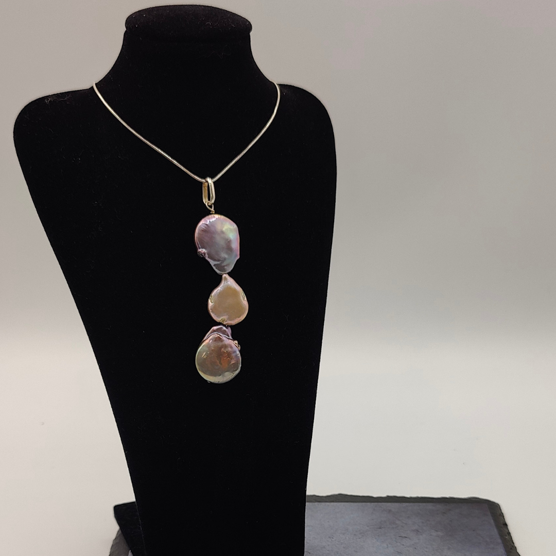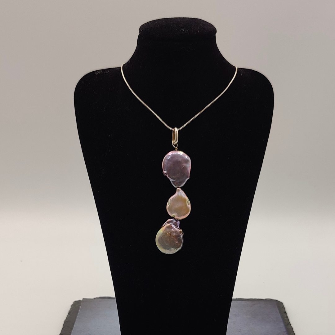 Deslumbrante colgante de plata de ley que presenta una perla barroca, reconocida por su forma única y su belleza orgánica.