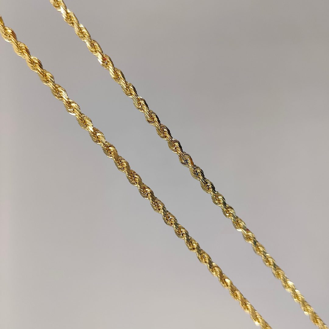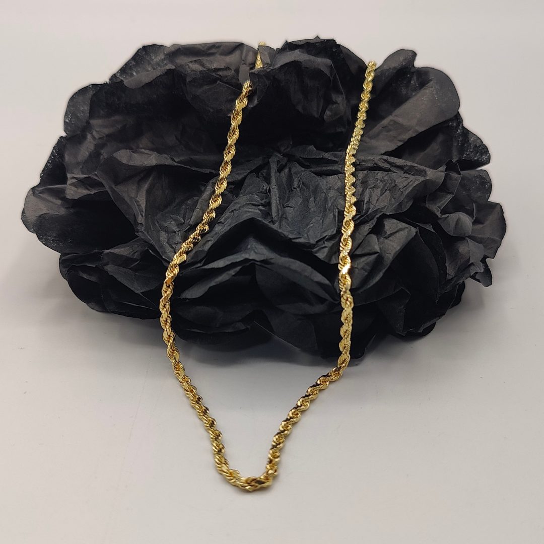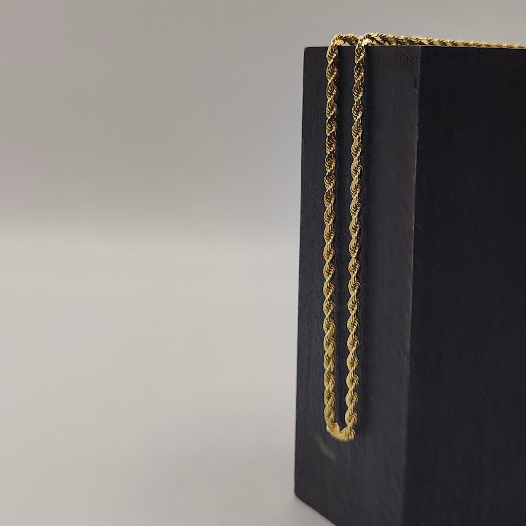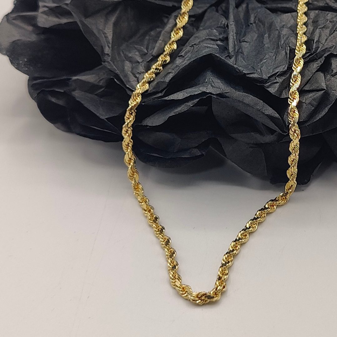 Añade un toque de elegancia y sofisticación a tu estilo con esta cadena de oro de 14 quilates. Con un grosor de 3 mm y una longitud de 46 cm.
