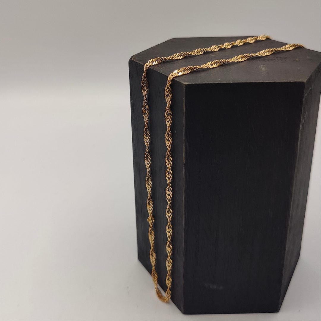 Añade un toque de elegancia clásica a tu colección con esta cadena cordón de oro de 18 quilates. Con un grosor de 3 mm y una longitud de 60 cm