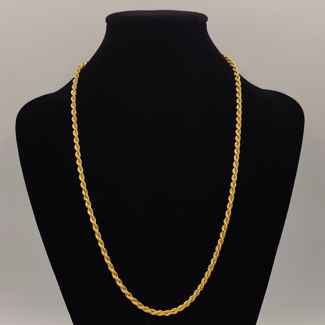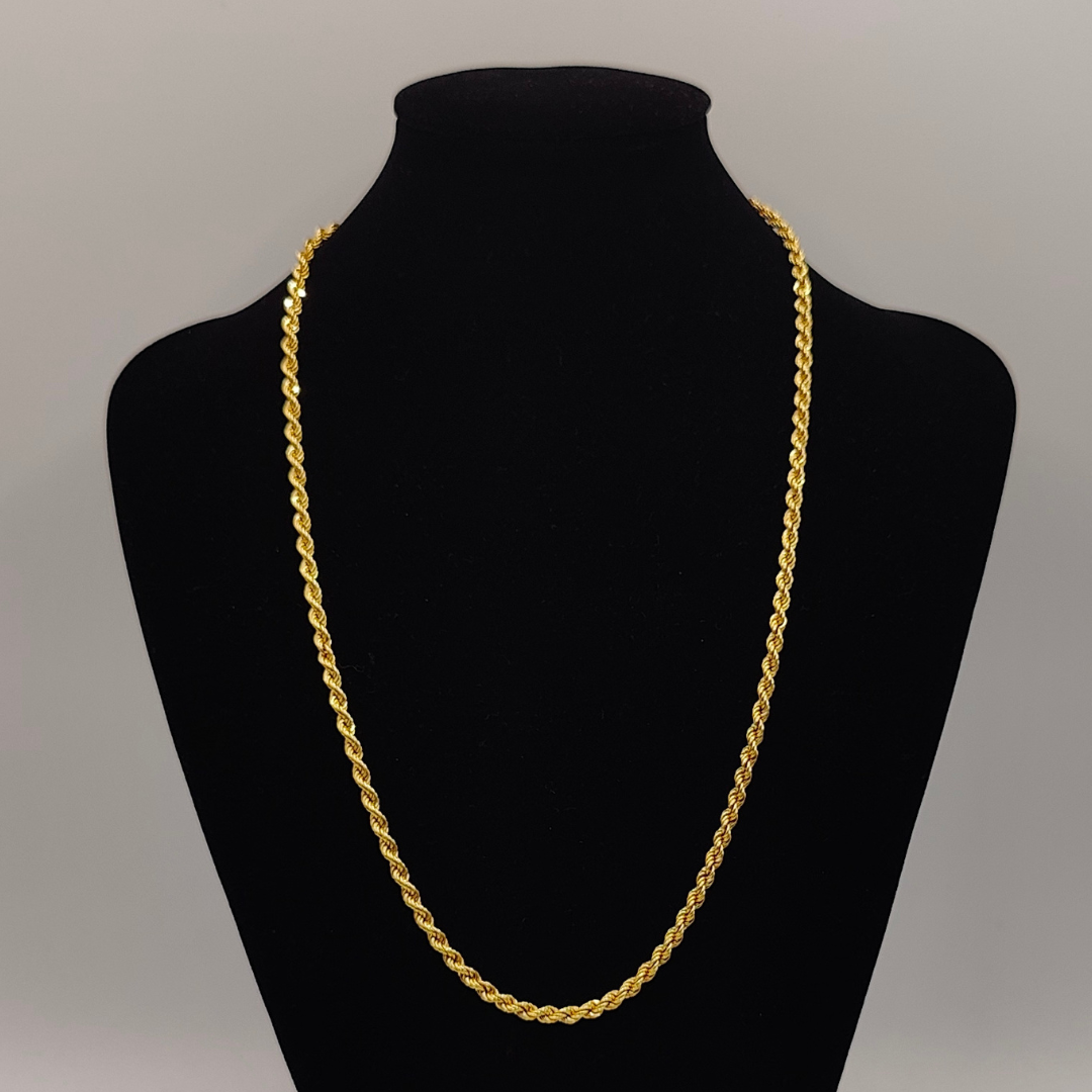 Esta cadena de 18 kilates tipo cordón de 55 cm y 3 mm es una joya exquisita que combina elegancia y sofisticación en una pieza única.