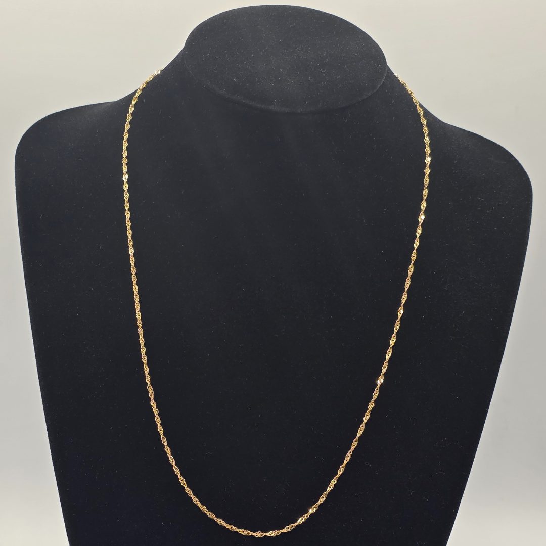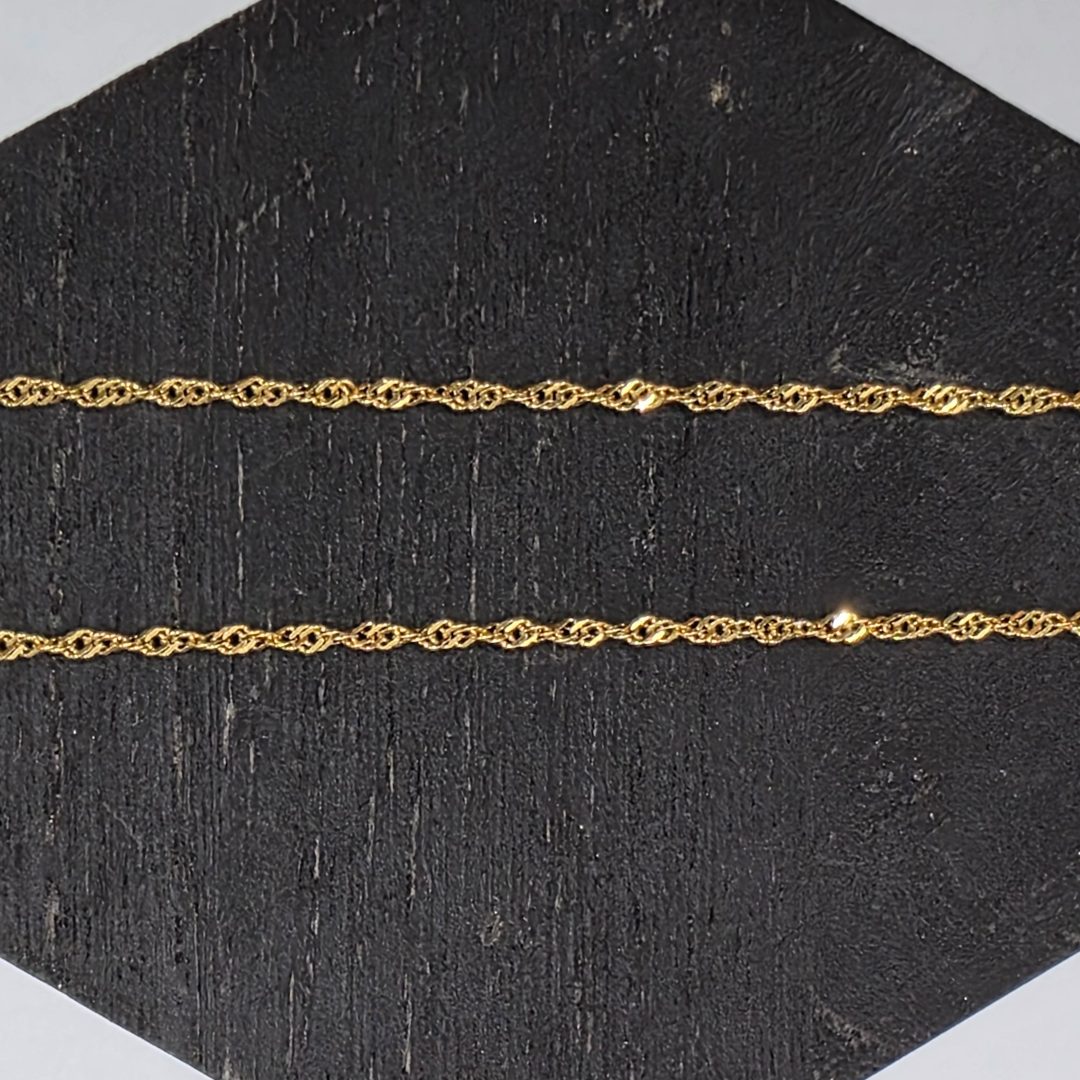 Este cordón espiral en oro de 18 quilates presenta un diseño elegante y único, con una estructura que forma una espiral suave, aportando dinamismo y sofisticación a la pieza. Con 2 mm de grosor y 59 cm de largo, es perfecto para quienes buscan un cordón duradero y versátil que pueda ser usado tanto solo como con un colgante. El oro de 18K asegura calidad, durabilidad y un brillo sutil, convirtiéndolo en una joya ideal para resaltar tu estilo con un toque de elegancia atemporal.