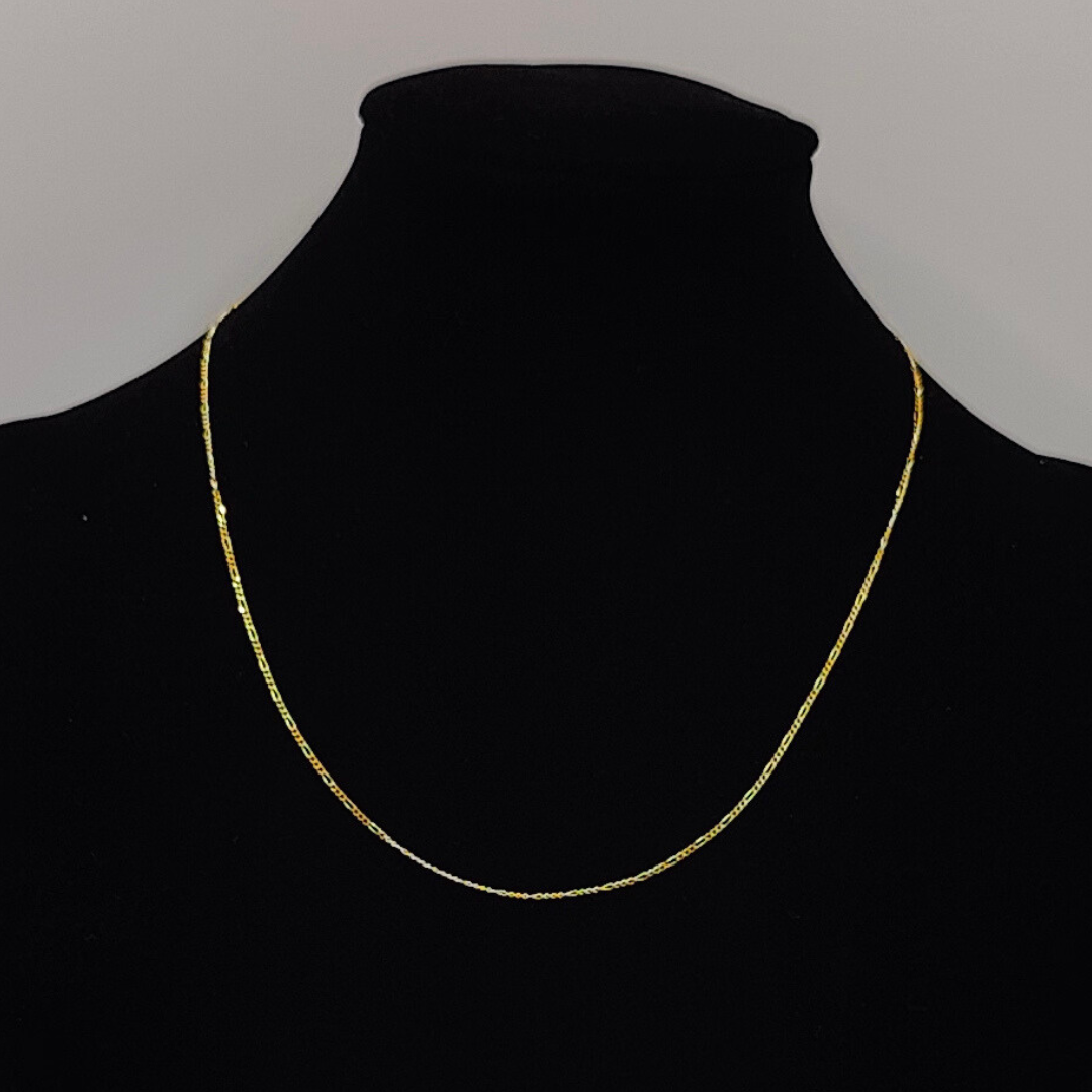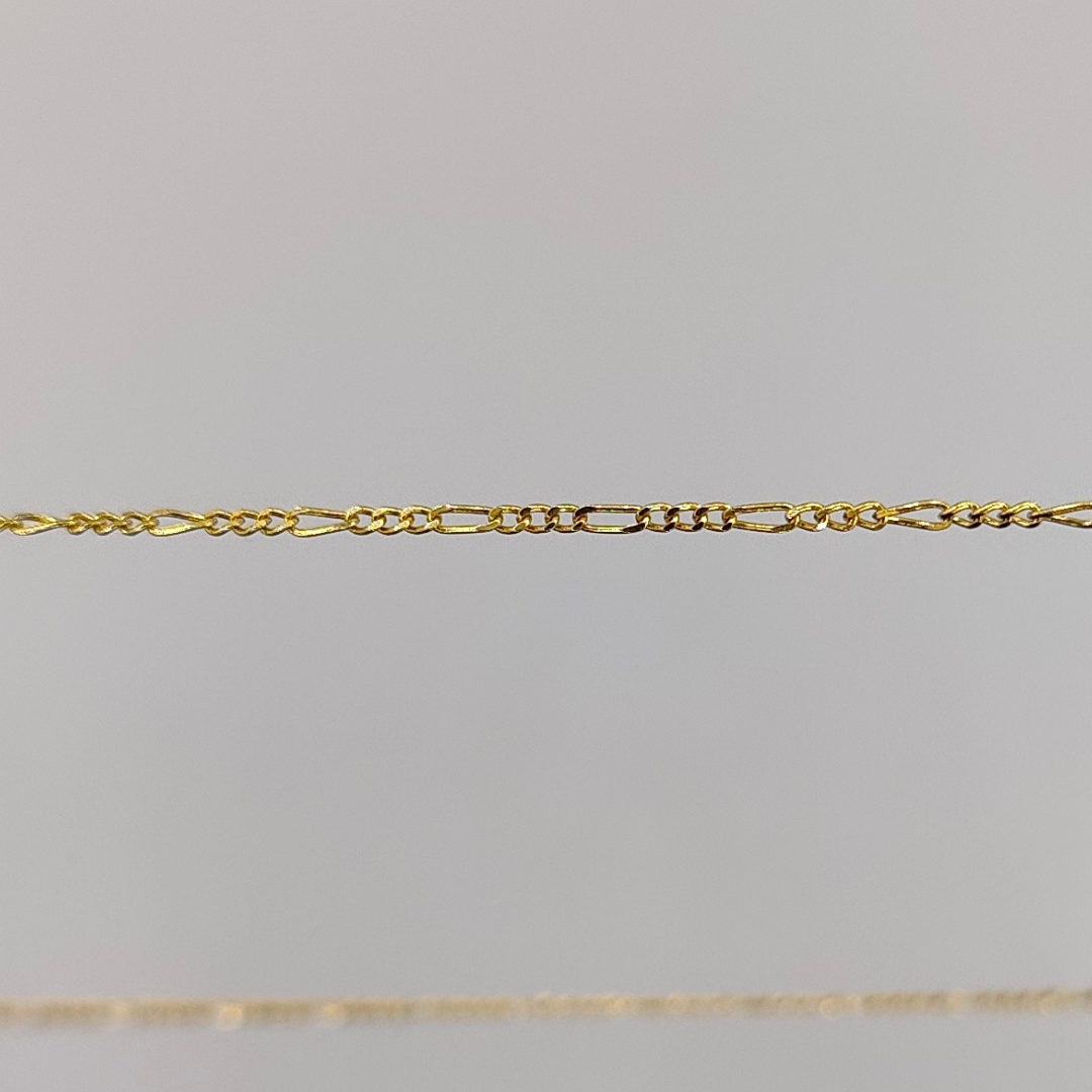 Esta cadena Fígaro de 40 cm, elaborada en oro de 18k, es una pieza exquisita que combina elegancia y sofisticación en un diseño delicado. Con un grosor de 1 mm