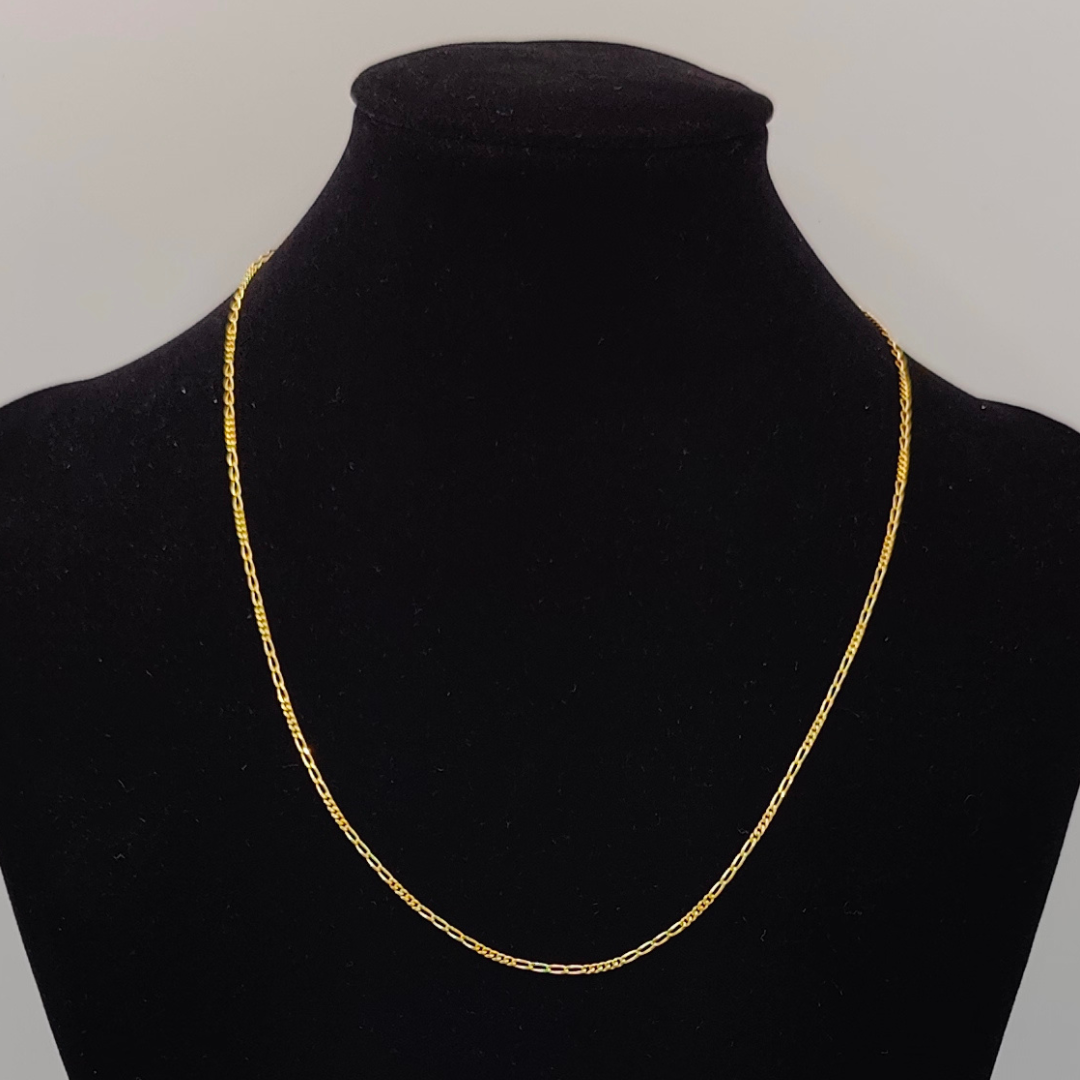 Esta cadena Fígaro de 45,5 cm, confeccionada en oro de 18k, es la combinación perfecta de elegancia y estilo. Con un grosor de 2 mm