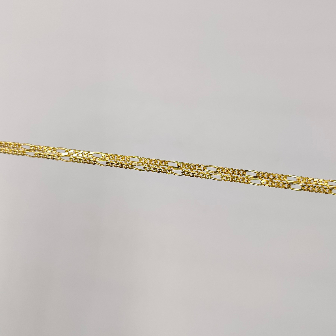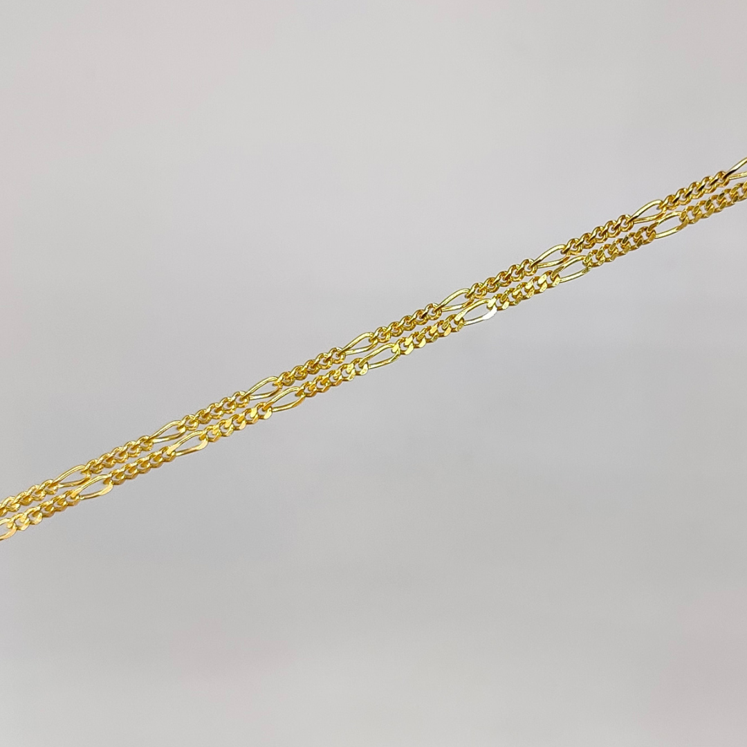 Esta cadena Fígaro de 60 cm, hecha en oro de 18k, es una joya sutil y elegante que destaca por su diseño clásico. Con un grosor de 2 mm, es perfecta para quienes prefieren un accesorio discreto pero con un toque de lujo. Su distintivo patrón de eslabones alternados aporta un estilo refinado, ideal para llevar sola o con un pequeño colgante. Esta cadena es una pieza versátil que complementa cualquier atuendo, convirtiéndose en un accesorio esencial en tu colección de joyería.