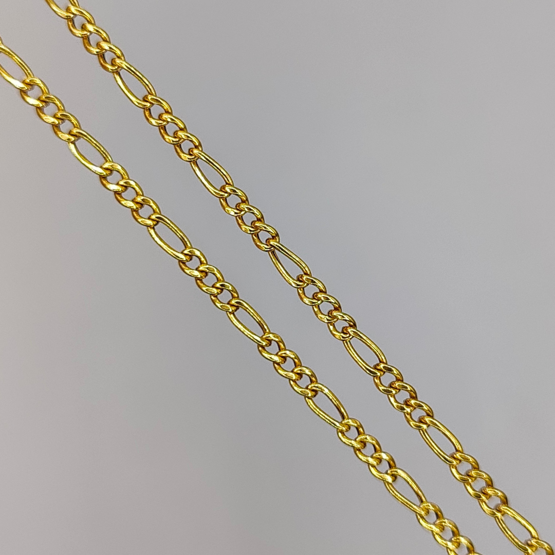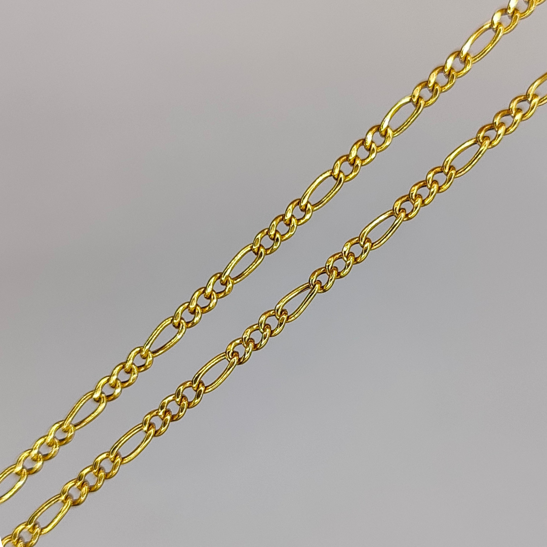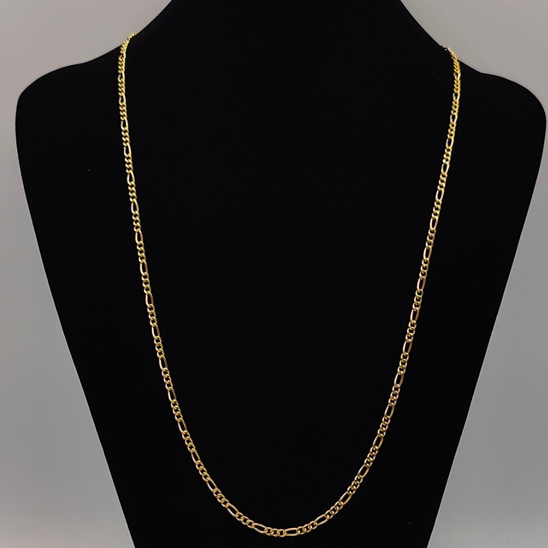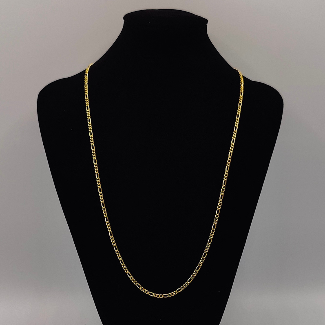 Esta elegante cadena Fígaro de 63 cm, confeccionada en oro de 18k, es un clásico que nunca pasa de moda. Con un grosor de 3 mm, ofrece una presencia sutil pero notable, ideal para quienes aprecian la delicadeza y la sofisticación en sus accesorios. Su diseño característico de eslabones alternados aporta un toque de distinción, haciéndola perfecta para usar sola o combinada con otros colgantes. Esta cadena es una inversión en estilo y calidad, perfecta para cualquier ocasión.