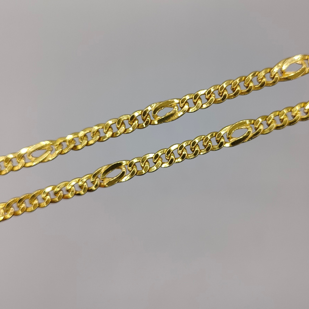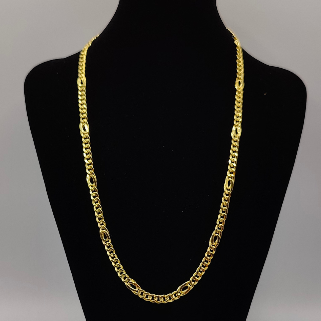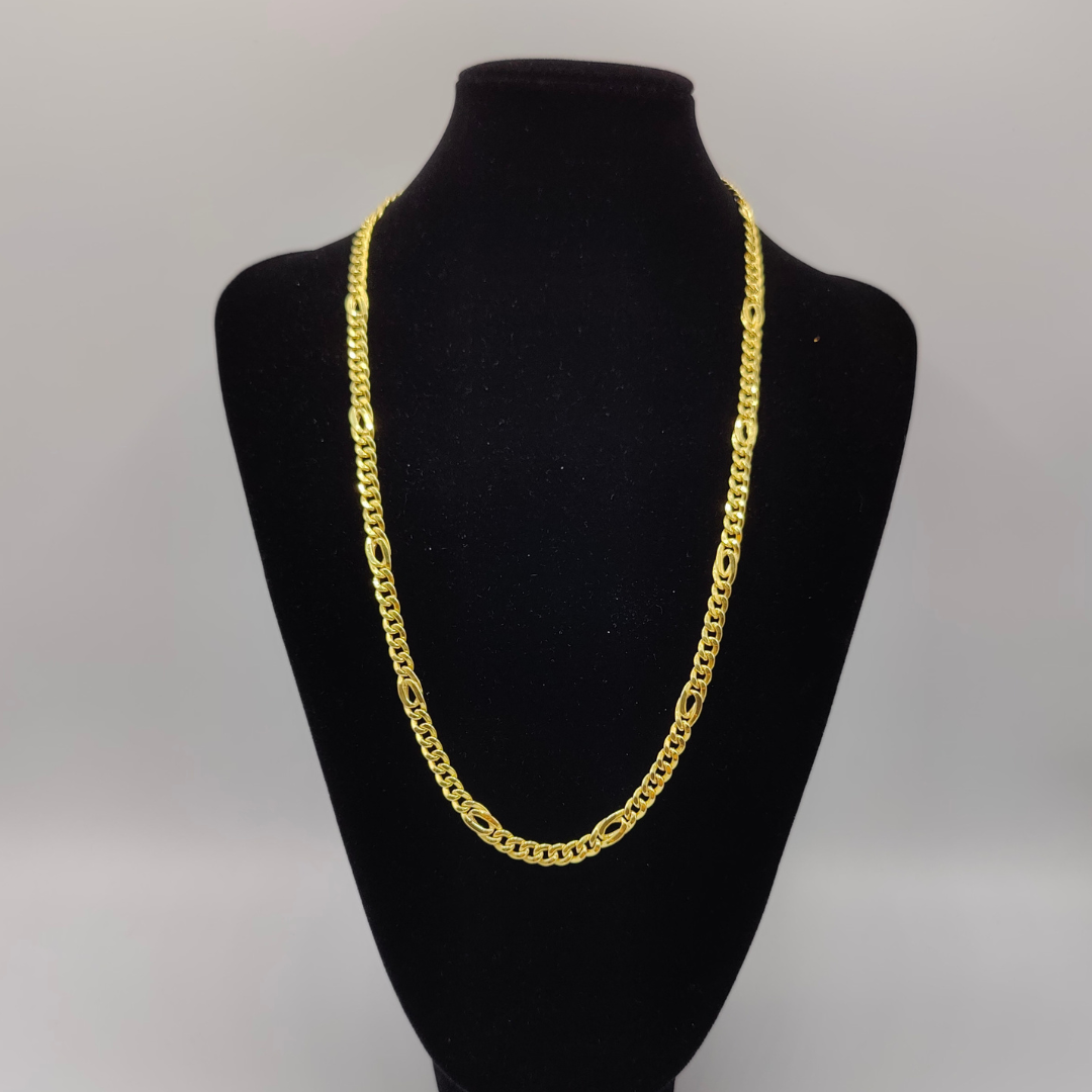 Añade un toque de elegancia y sofisticación a tu estilo con esta impresionante cadena Fígaro de oro de 18 quilates. Con una longitud de 59,5 cm y un ancho de 6 mm, esta cadena combina un diseño clásico con una presencia robusta, ideal para aquellos que buscan destacar con un accesorio de alta calidad. Esta cadena Fígaro es perfecta para cualquier ocasión, desde eventos formales hasta reuniones casuales. Su diseño clásico y elegante la convierte en una pieza versátil que puede complementar tanto atuendos de negocios como looks de noche.