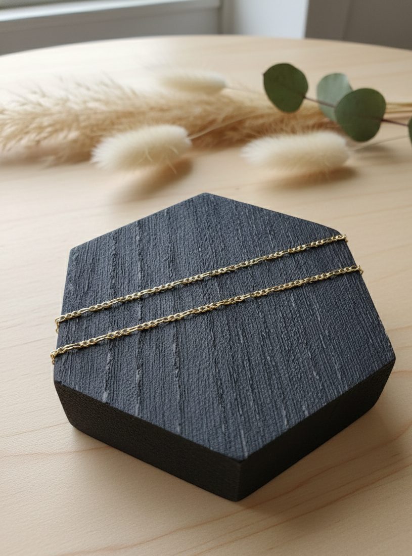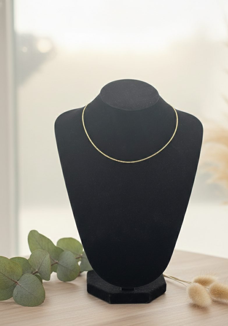 Con un largo de 42 cm y un grosor de 2 mm, esta cadena presenta un diseño fino y ligero, ideal para el uso diario o para llevar con colgantes. Su peso de 1,22 g la hace cómoda y discreta, perfecta para quienes buscan una joya delicada sin perder calidad.