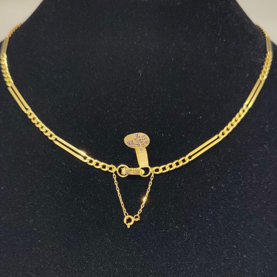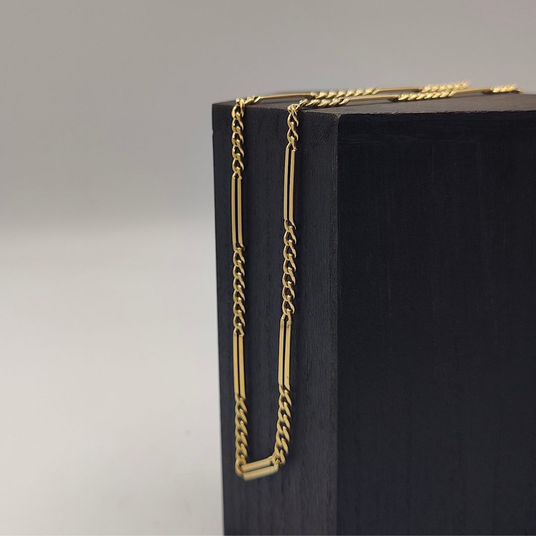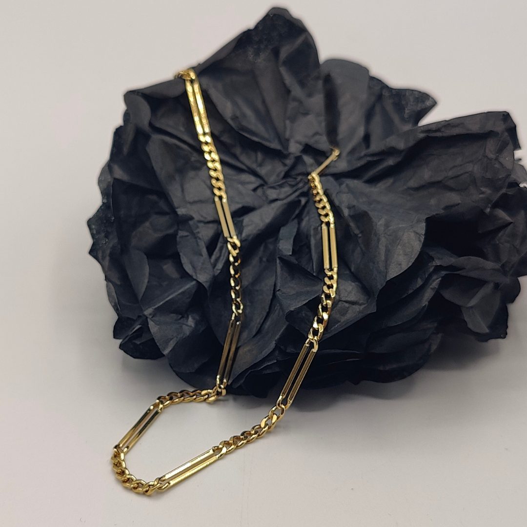 Este diseño exclusivo combina dos estilos icónicos: los eslabones de tipo Fígaro y Cubana, creando una cadena robusta pero elegante. Además, cuenta con un doble cierre para mayor seguridad: un cierre paro y una cadena de seguridad con cierre criollo, lo que garantiza un ajuste perfecto y una protección adicional. Con un grosor de 4 mm, esta cadena ofrece un equilibrio perfecto entre estilo y funcionamiento.