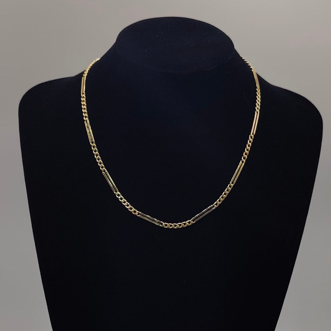 Conoce la sofisticación y seguridad de nuestra Cadena Mixta entre Fígaro y Cubana de 47 cm en Oro de 18 quilates.