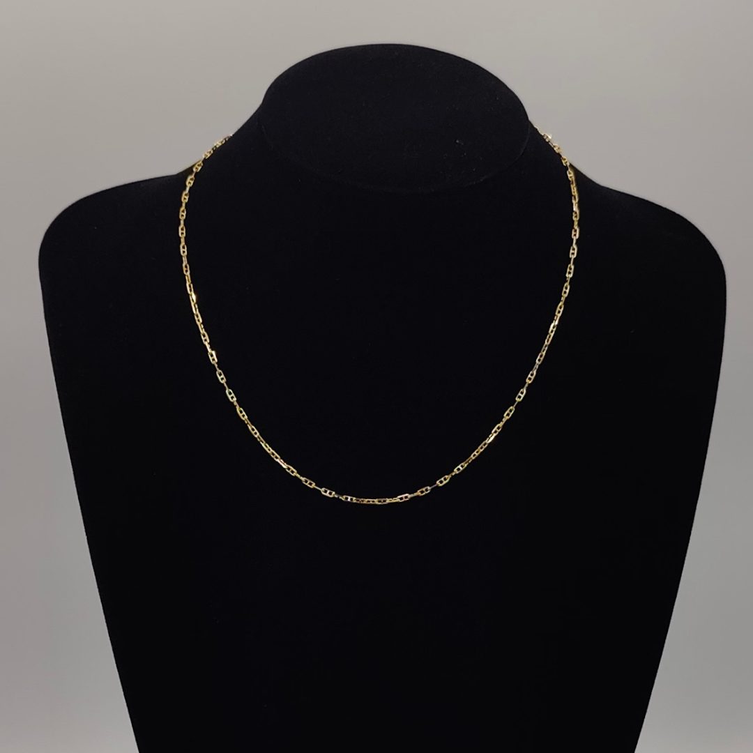Esta elegante cadena rolo de oro de 18 quilates es la opción ideal para quienes buscan una pieza delicada pero duradera. Con un grosor de 2 mm y una longitud de 45 cm, su diseño de eslabones redondeados intercalados proporciona un brillo sutil y una apariencia atemporal. Fabricada en oro de 18K, esta cadena ofrece una calidad excepcional y resistencia, perfecta para complementar cualquier estilo, desde lo casual hasta lo más cómodo. Su longitud de 45 cm permite un ajuste cómodo cerca del cuello, lo que la convierte en una elección versátil tanto para el uso diario como para ocasiones especiales. Ya sea sola o acompañada de un colgante, esta cadena rolo es una pieza imprescindible en cualquier colección de joyas.