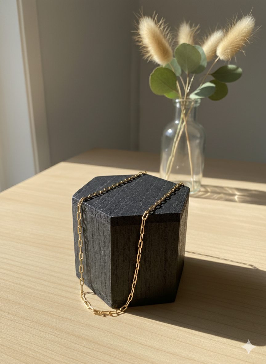 Ideal para quienes buscan una cadena rolo cuadrada de oro 18K, una cadena larga y robusta, o una joya atemporal con carácter propio.
