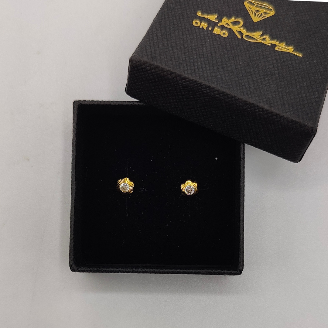 Pendiente Florecita con Circonita en Oro Dorado y Blanco de 18K