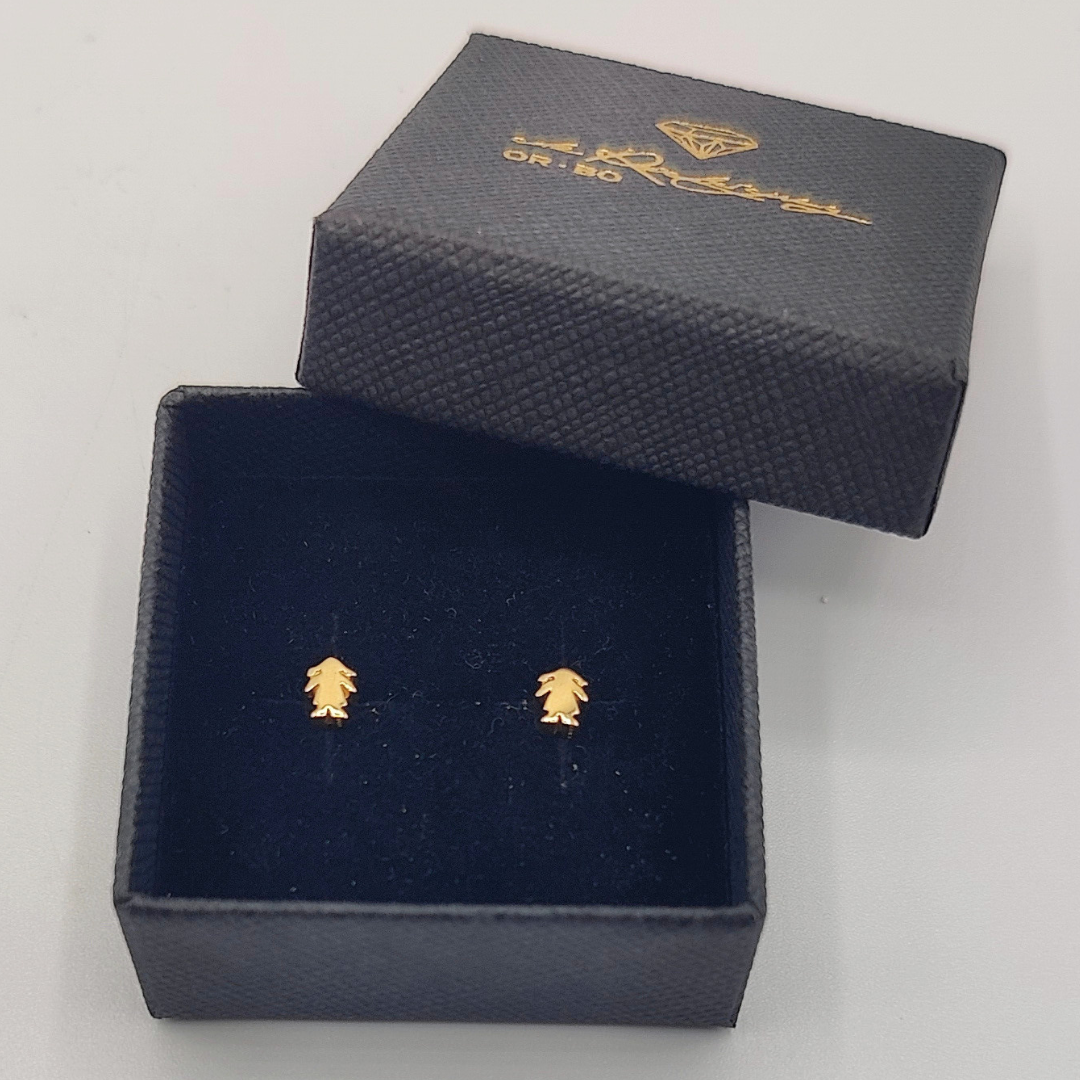 Diseño Delicado: Cada pendiente presenta la figura de una niña en oro de 18k, simbolizando la pureza y la ternura de la infancia, con un acabado suave y detallado.
