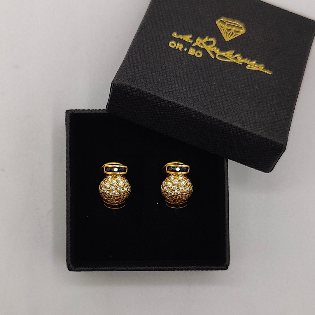 Pendiente Esfera con Diamantitos y Zafiros en Oro de 18K