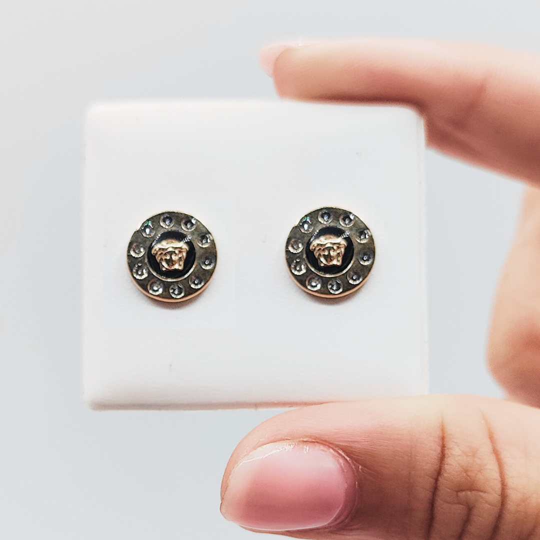 Pendiente redondo estilo Versace con circonitas