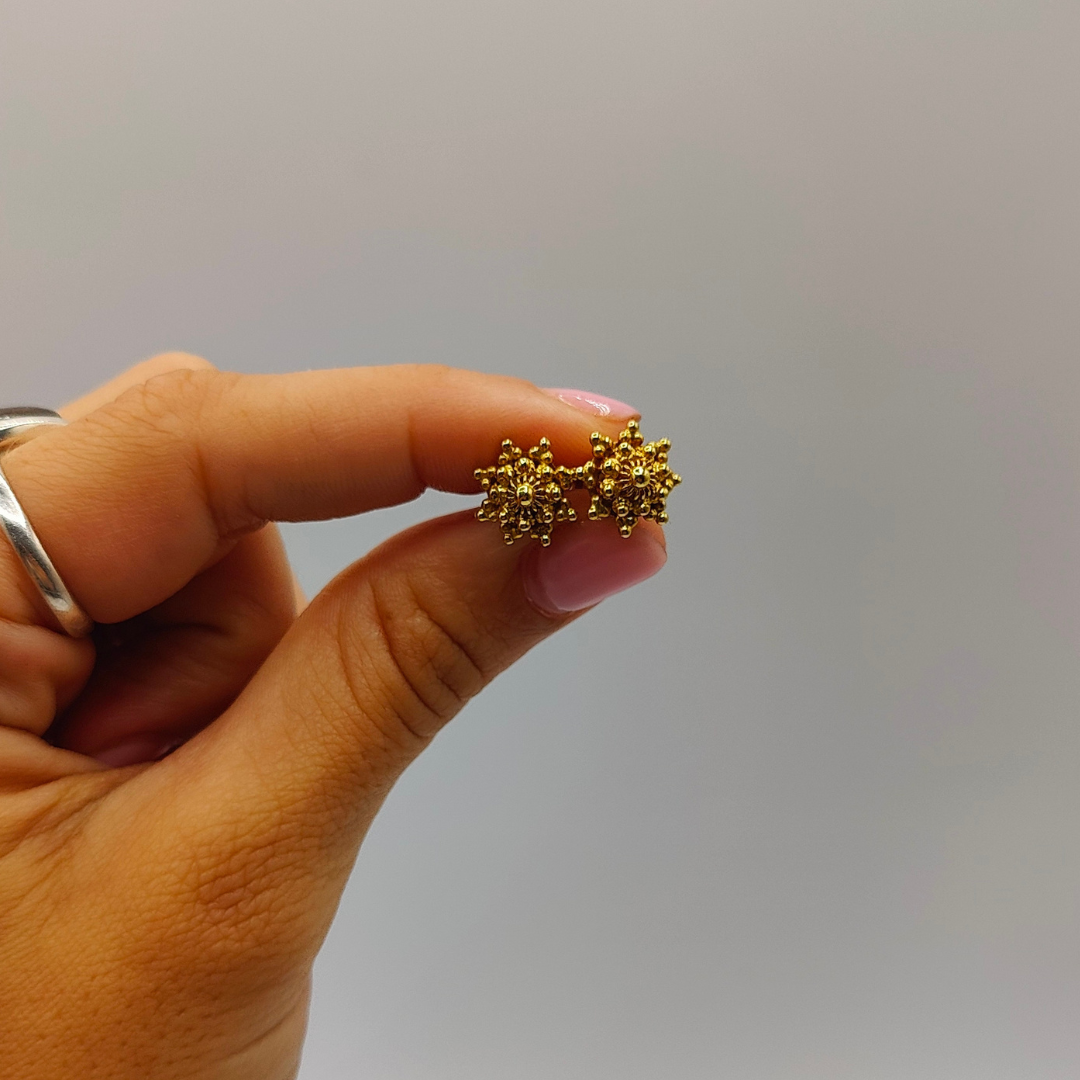 Añade un toque de sofisticación intemporal a tu colección de joyas con nuestros pendientes rosetón elaborados en oro de 18 quilates. Este diseño clásico y elegante destaca por su meticulosa artesanía, donde el oro de alta calidad se moldea en una delicada forma de rosetón, simbolizando la belleza y la pureza de una flor en plena floración.