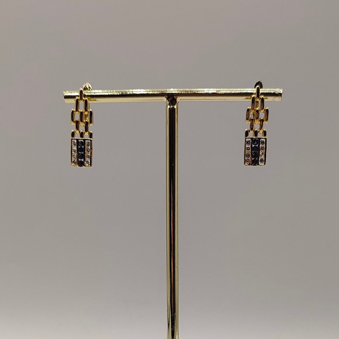 Pendientes colgados con zafiros, circonitas y oro de 18k