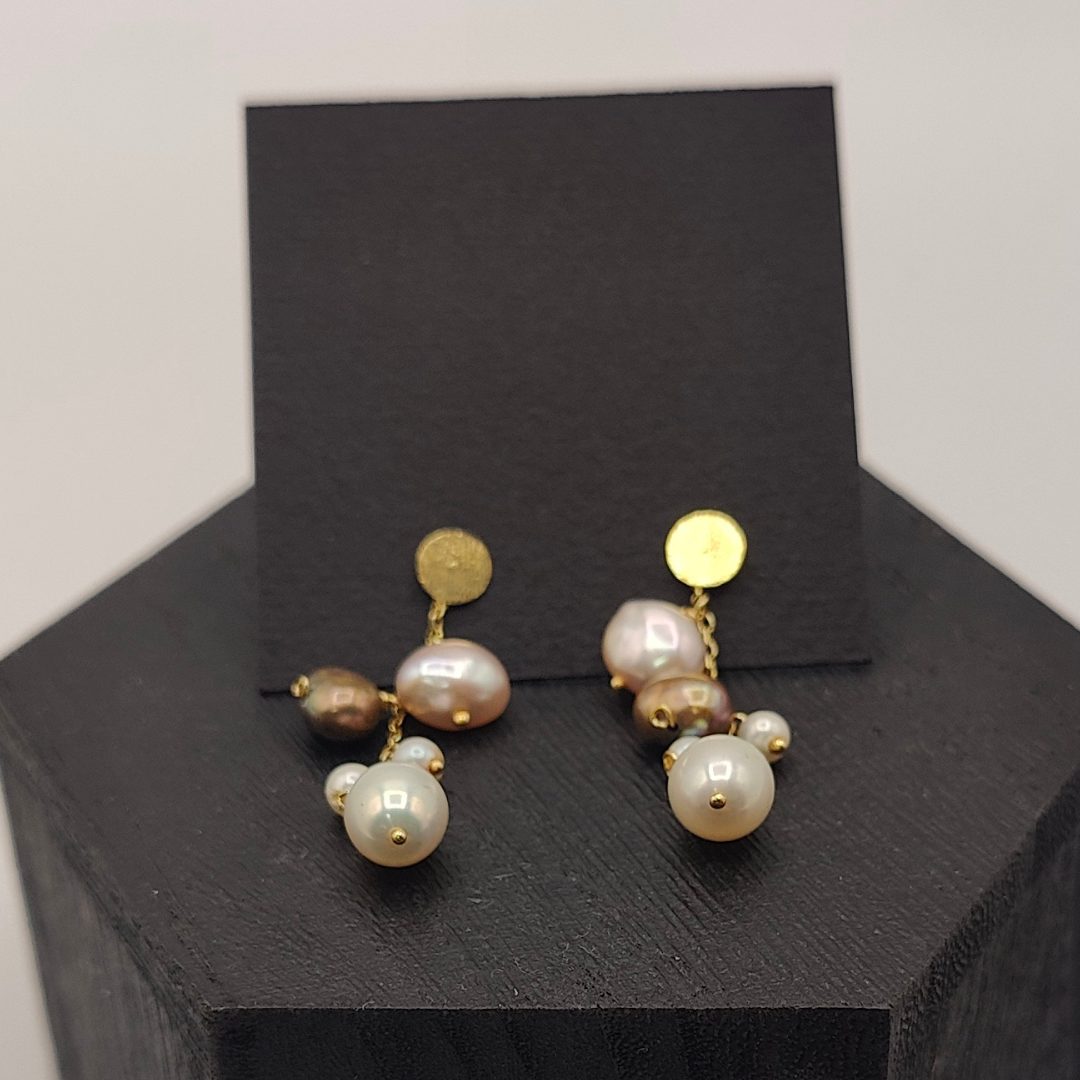 Estos elegantes pendientes colgados combinan la pureza de las perlas naturales con el brillo cálido del oro de 18 quilates, creando una pieza de joyería clásica y sofisticada. Su diseño atemporal los convierte en un accesorio perfecto tanto para ocasiones especiales como para el día a día, añadiendo un toque de distinción y elegancia a cualquier look.