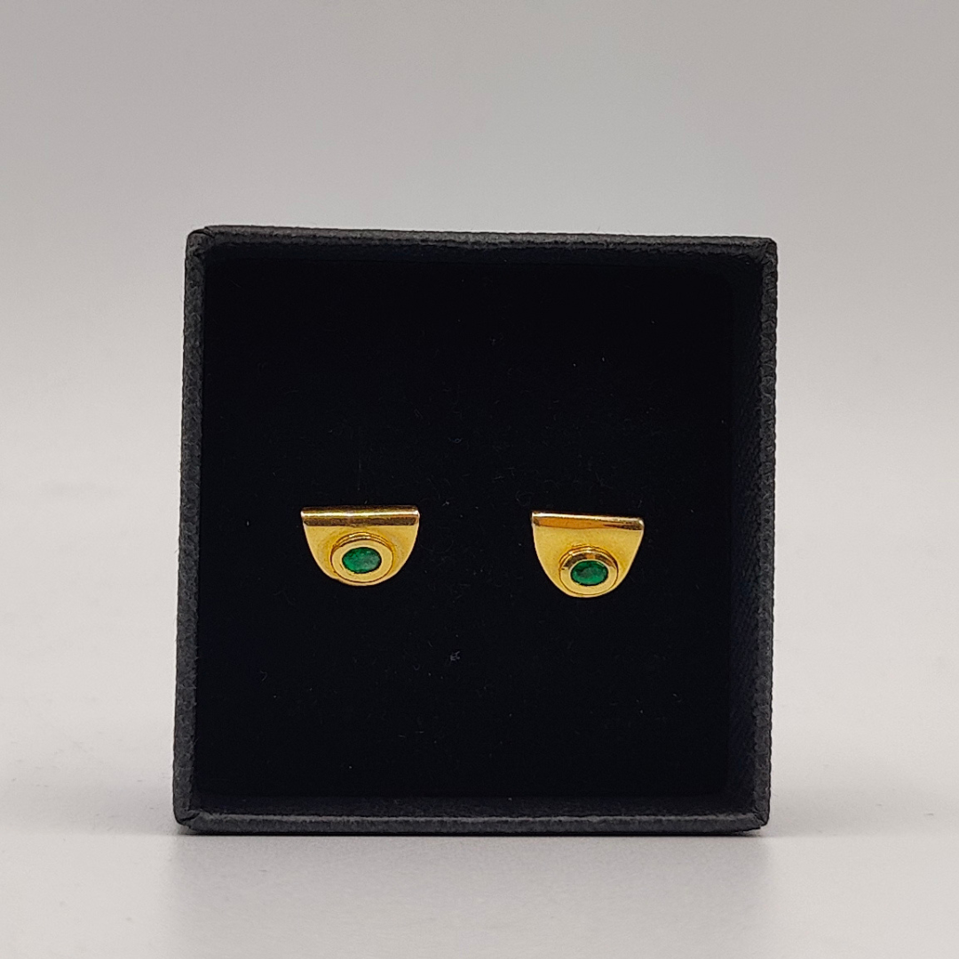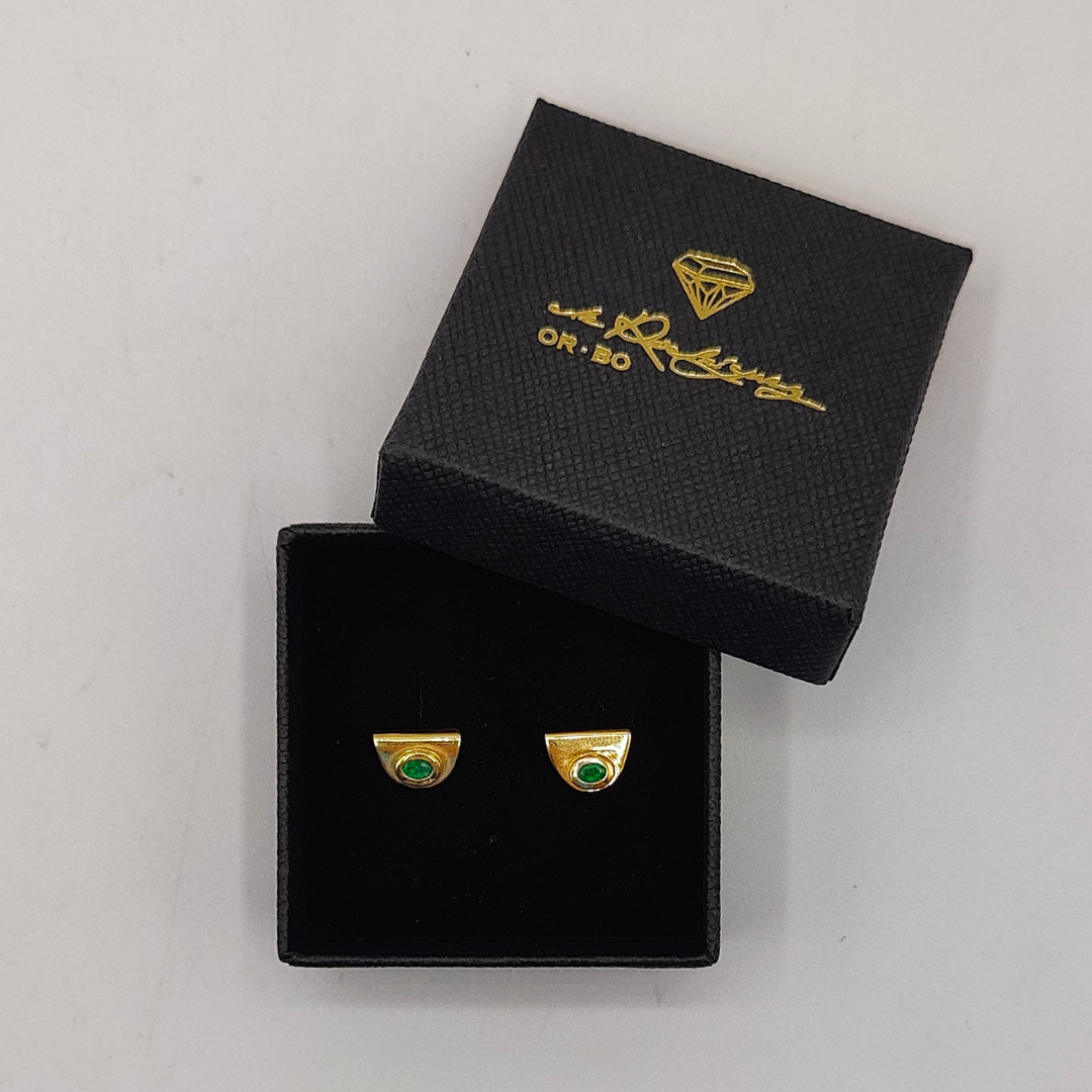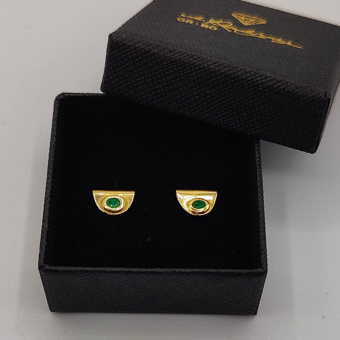 Diseño Elegante: Cada pendiente presenta una forma de medio círculo, con un diseño fluido y moderno que realza la belleza del oro y de la esmeralda. La forma semi-circular aporta una elegancia contemporánea, ideal para cualquier ocasión.