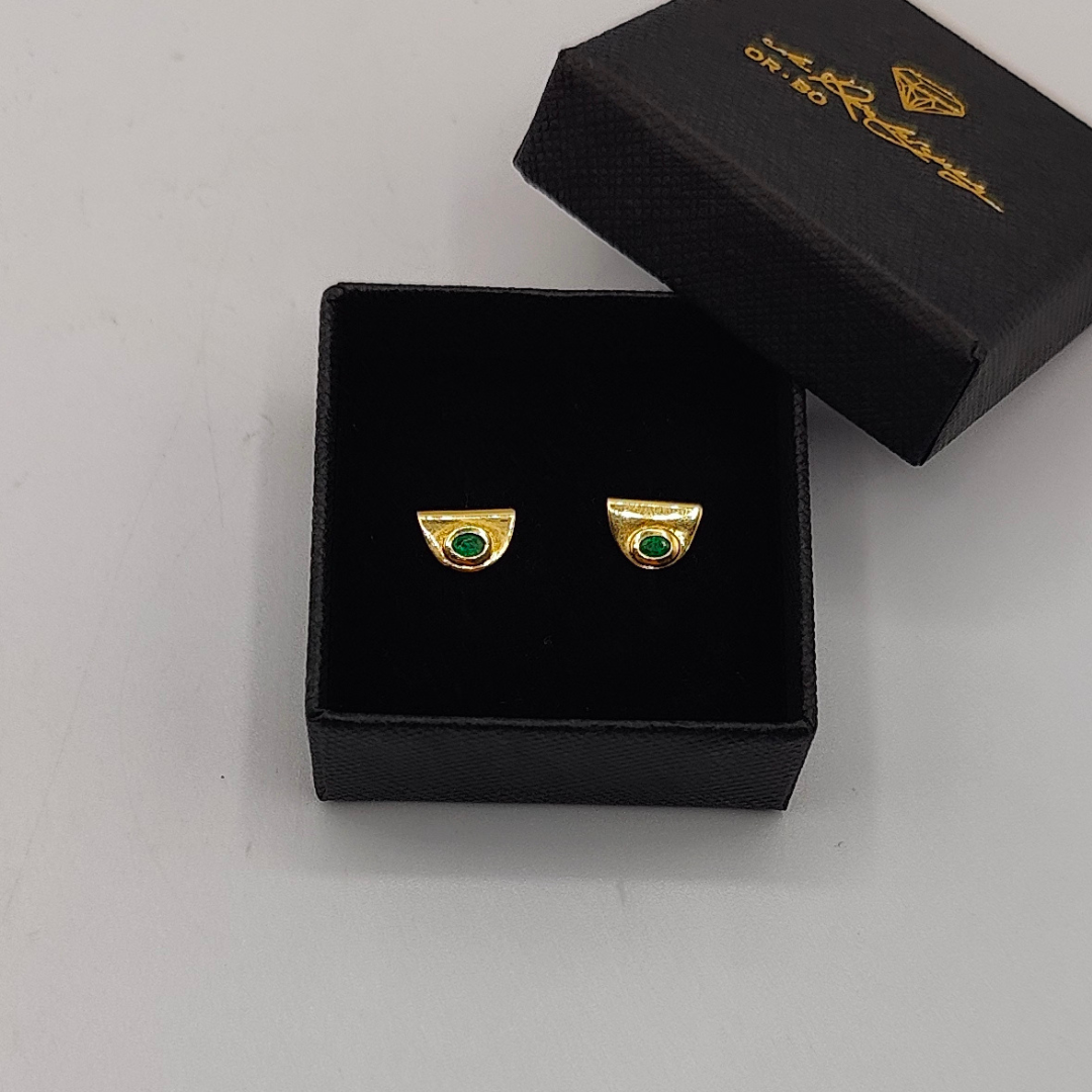 Estos pendientes de medio círculo con esmeralda en el centro son el accesorio perfecto para quienes buscan una joya que combine elegancia y un toque de color vibrante, realzando cualquier atuendo con sofisticación y estilo.
