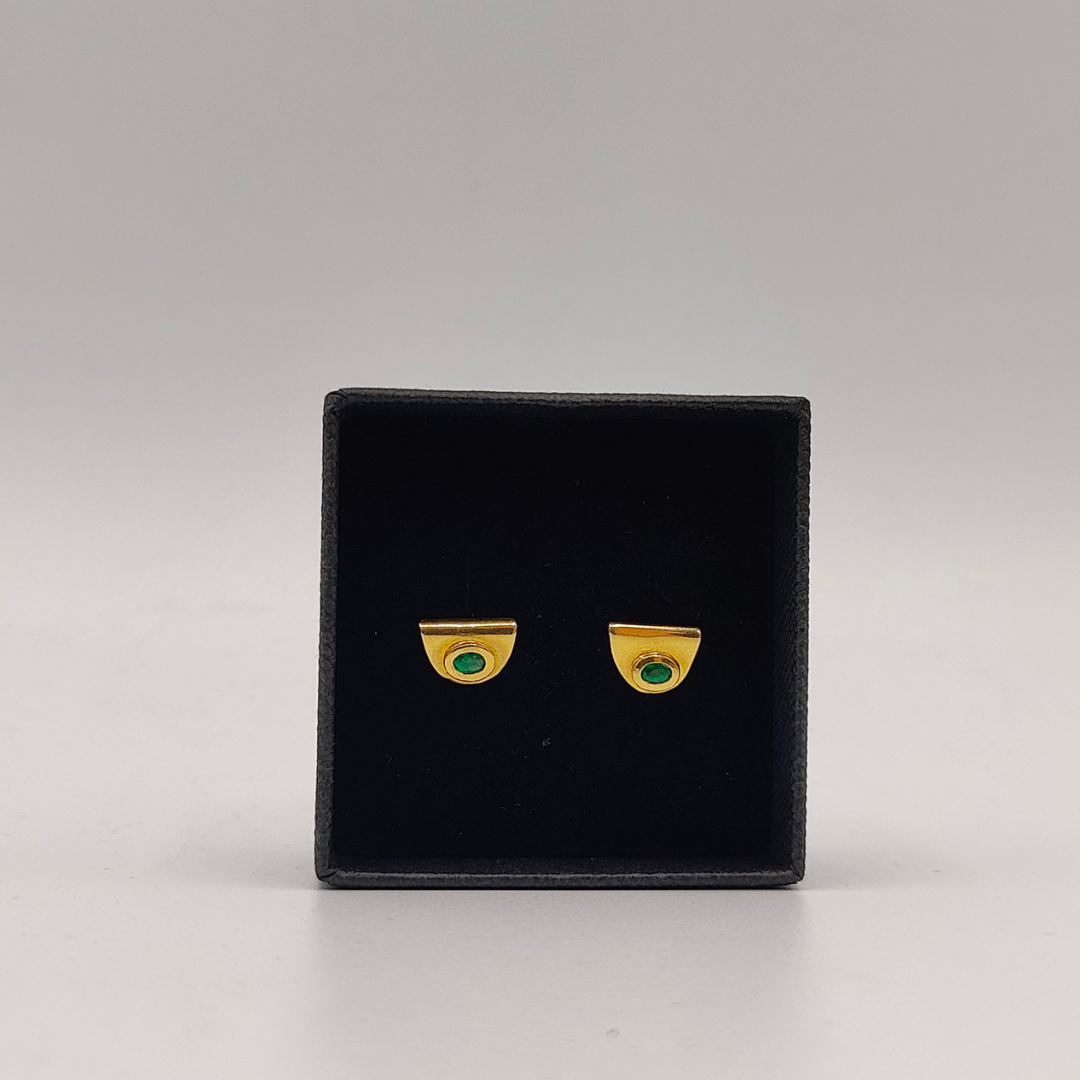 Pendientes de Medio Círculo con Esmeralda en el Centro