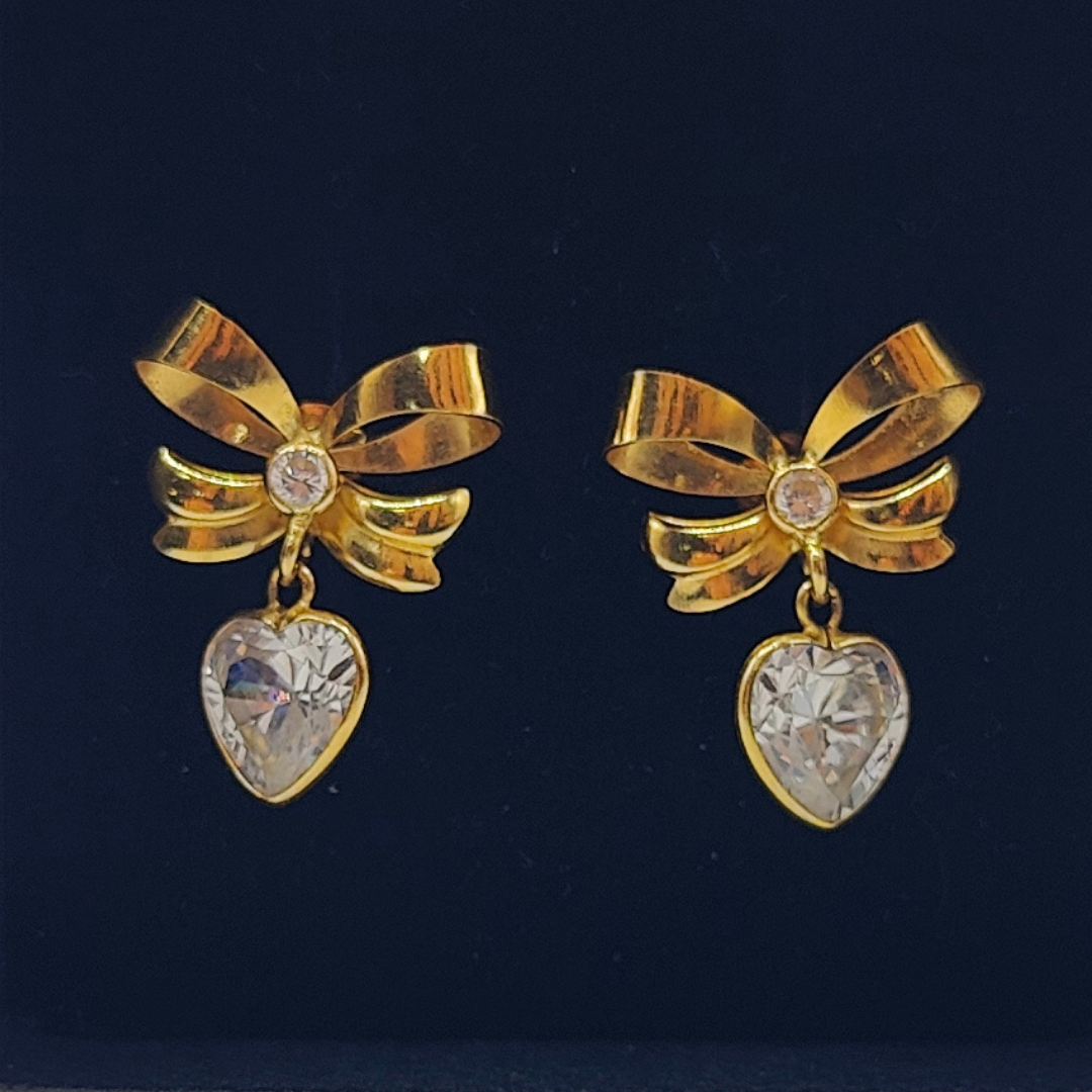 Añade un toque de romanticismo y elegancia a tu look con nuestros pendientes en forma de lazo, adornados con un encantador corazón de circonita colgante.