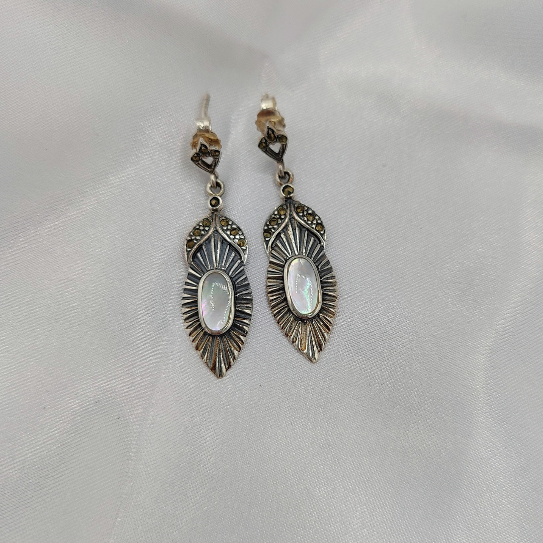 ✨ Añade un toque de elegancia y brillo a tu look con estos encantadores pendientes de plata. 💫 Con un diseño ovalado de nácar que irradia una suave luminosidad y está adornado con exquisitas marquesitas, estos pendientes capturan la esencia de la sofisticación atemporal.