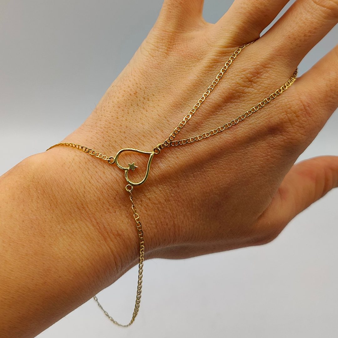 Esta exquisita pulsera anillo en oro de 18K combina la elegancia del estilo barbada con un toque romántico único: un delicado corazón que actúa como unión central. Este diseño simboliza la conexión y el amor, convirtiéndola en una joya significativa y perfecta para cualquier ocasión especial.